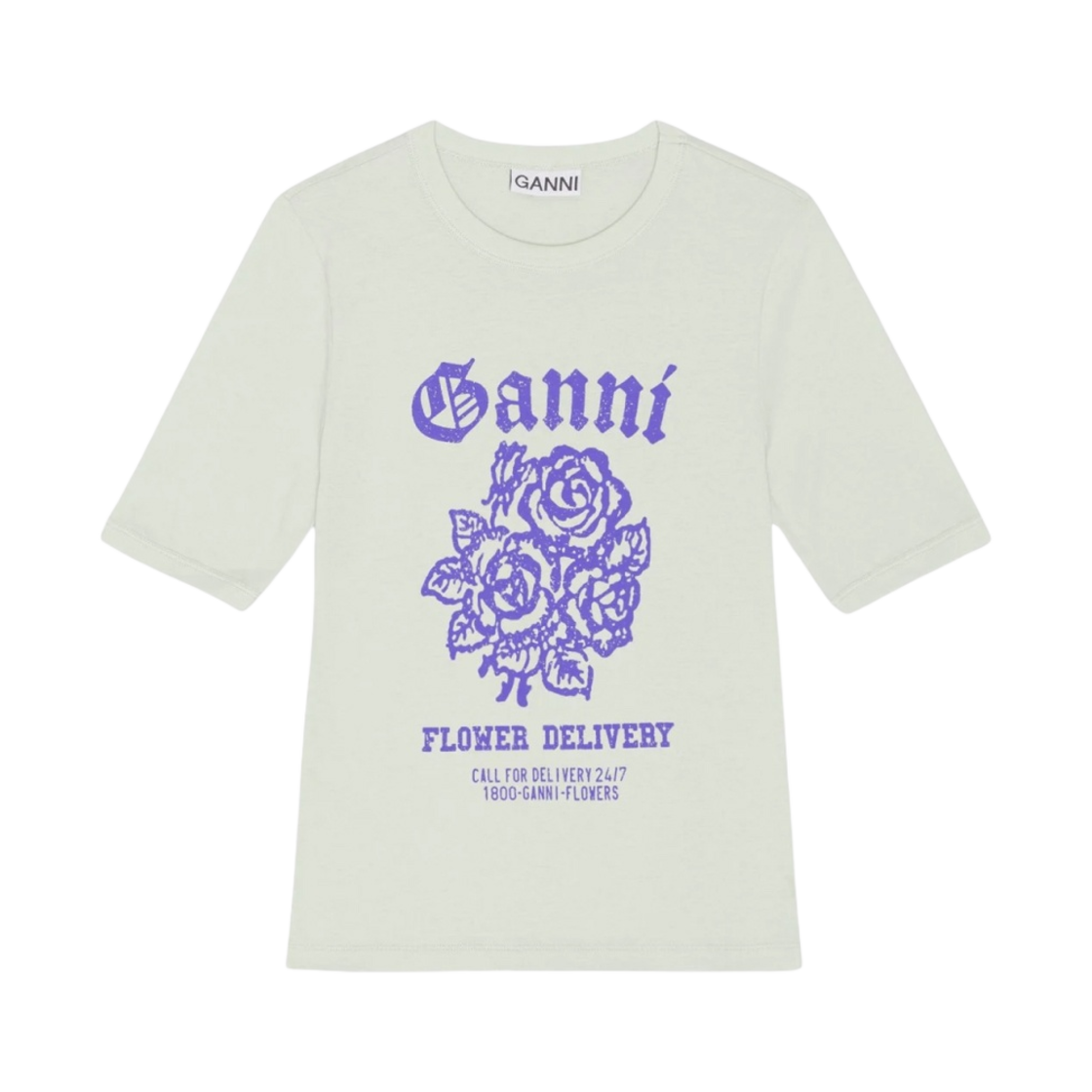 (W) Ganni Light Cotton Jersey Flower Fitted T-Shirt Sea Foam
