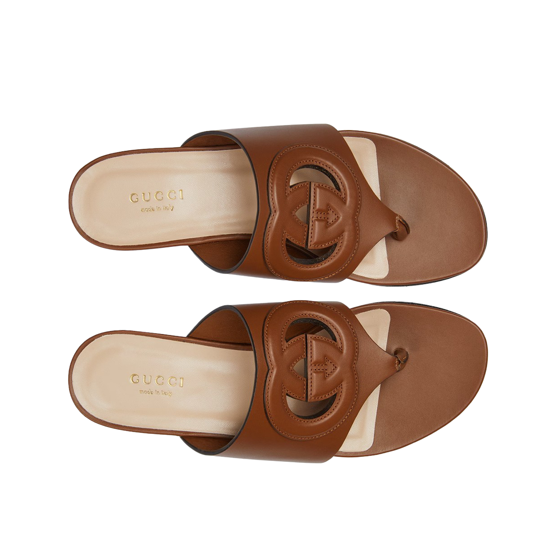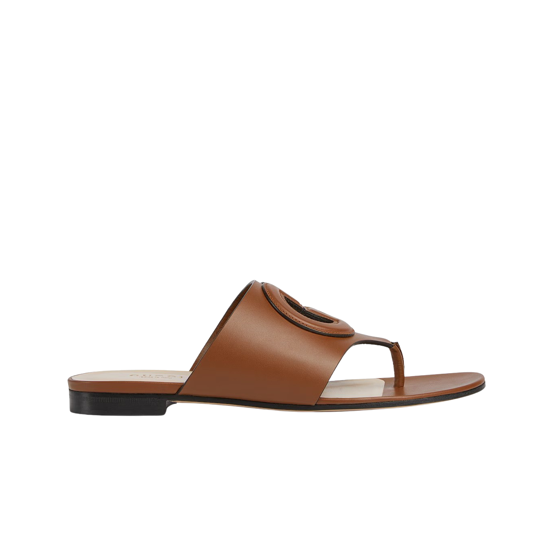 (W) Gucci Interlocking G Cut-Out Leather Sandal Brown