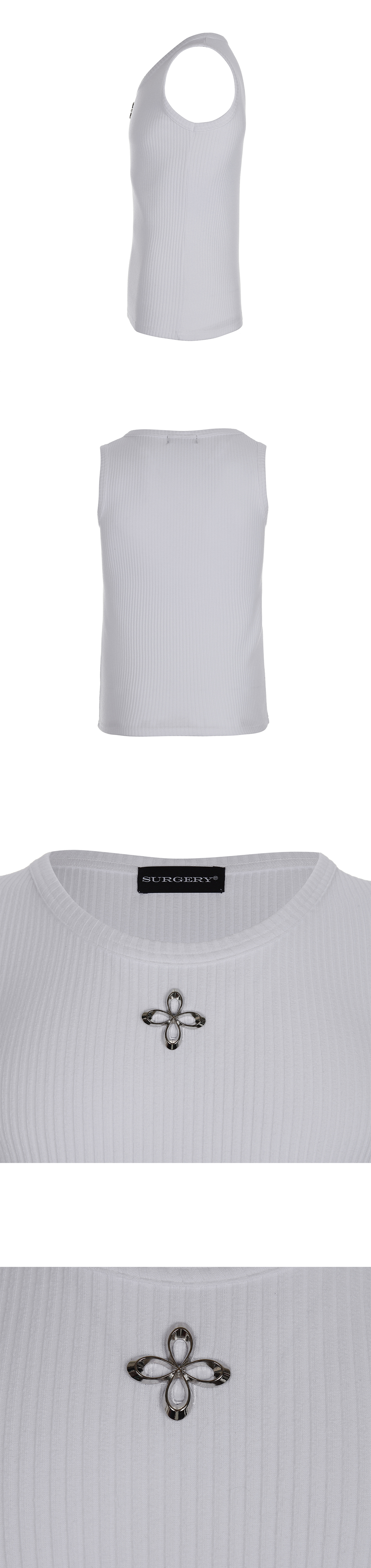 써저리 메탈 클로버 로고 슬리브리스 화이트