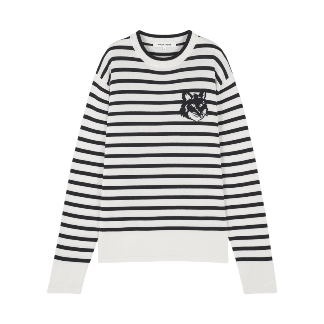 Maison Kitsune Fox Head Intarsia Comfort Striped Jumper Deep Navy Off White Stripes