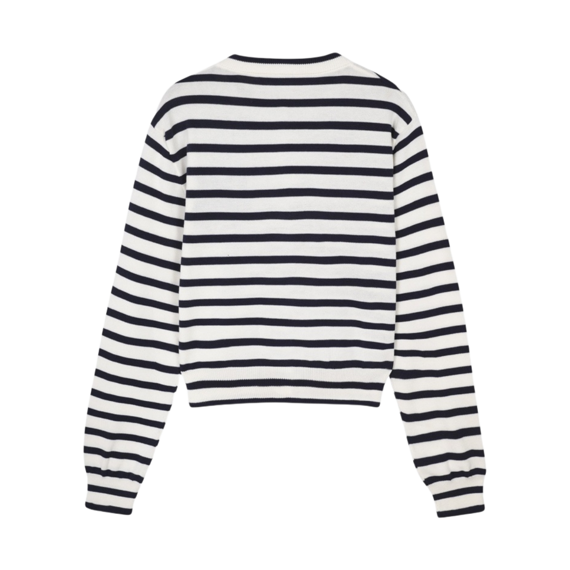 (W) 메종 키츠네 폭스 헤드 인타르시아 크롭 스트라이프 가디건 딥 네이비 오프 화이트 스트라이프