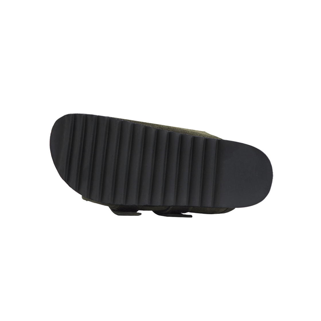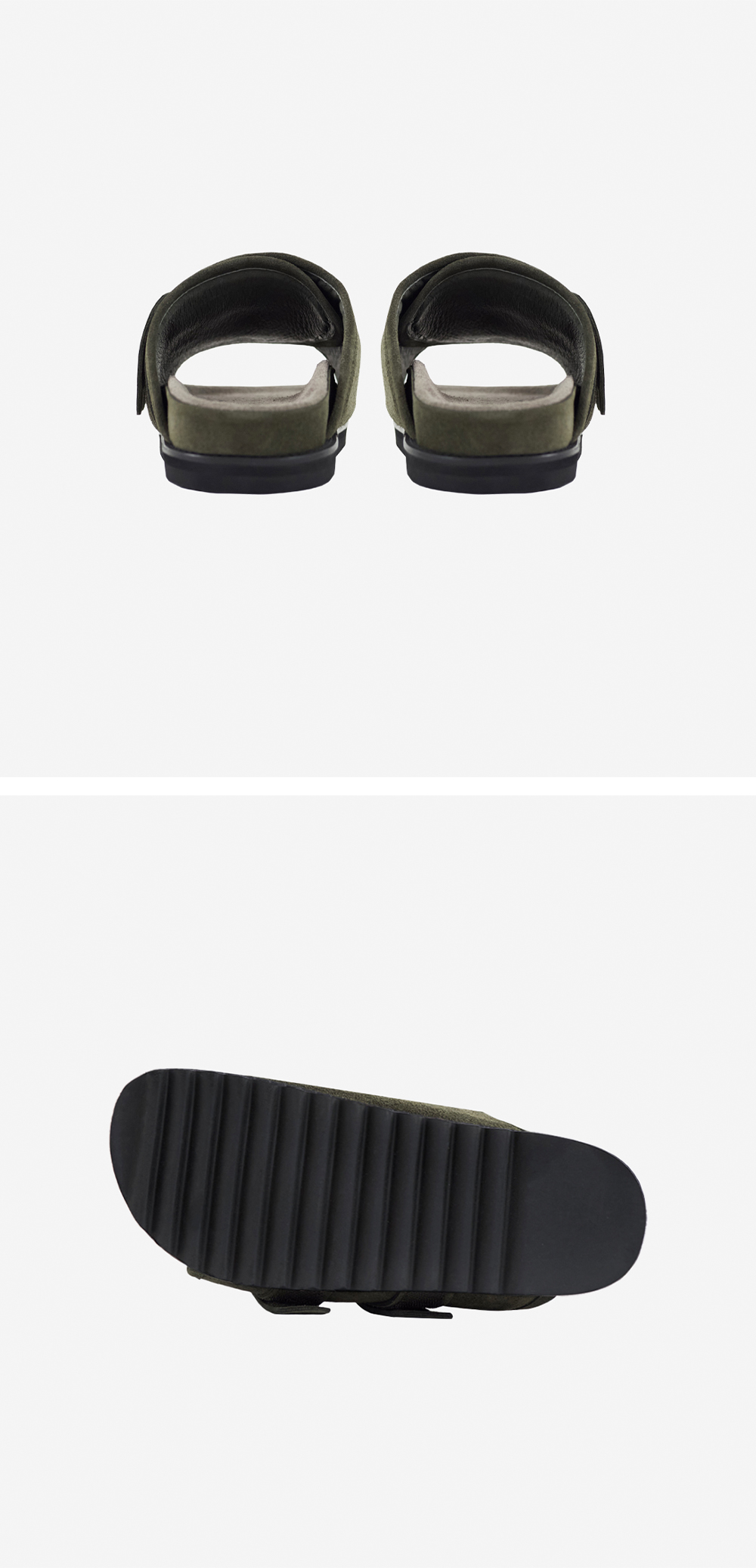 *본 제품은 예약주문 제품으로, 6/5(목) 11:00 ~ 6/12(목) 11:00까지 접수를 진행합니다. *주문 순서에 따라 발송까지 8~9주 소요됩니다. *7/31(목) ~ 8/5(화)까지 발송 예정 jumbo slippers 슬라이더 슈즈를 기반으로 더블형태 덮개형식으로 해석한 슬리퍼. 사이드 밸크로 스트랩. 슬리퍼 발등의 밸크로와 사이드의 밸크로를 이용해 각 날개의 밸크로와 뒷축의 조절으로 발에 맞는 쉐입과 사이즈로 조절 가능. 바닥은 천연 스웨이드 사용하여 부드러운 촉감 및 힐슬립을 방지. 초기 양말과 함께 착용 권장드리며, 약 3회 가량 단회착 이후, 제품이 길들여져 발등이 부드럽고 유연해진 시점부터는 맨발로도 편안하게 착용할 수 있습니다. *본 제품 경우 발등플랩을 조절을 통해 본연의 편안한 착화감으로 착용해주실 수 있습니다. 발등플랩(덮개)의 밸크로를 해제하고 전체 오픈하신 뒤, 발목 모양에 맞춰 덮개를 다시 닫아주시기 바랍니다. 기존 대비 경량의 샤크솔 교체되며 착용감이 소폭 개선될 예정입니다.
