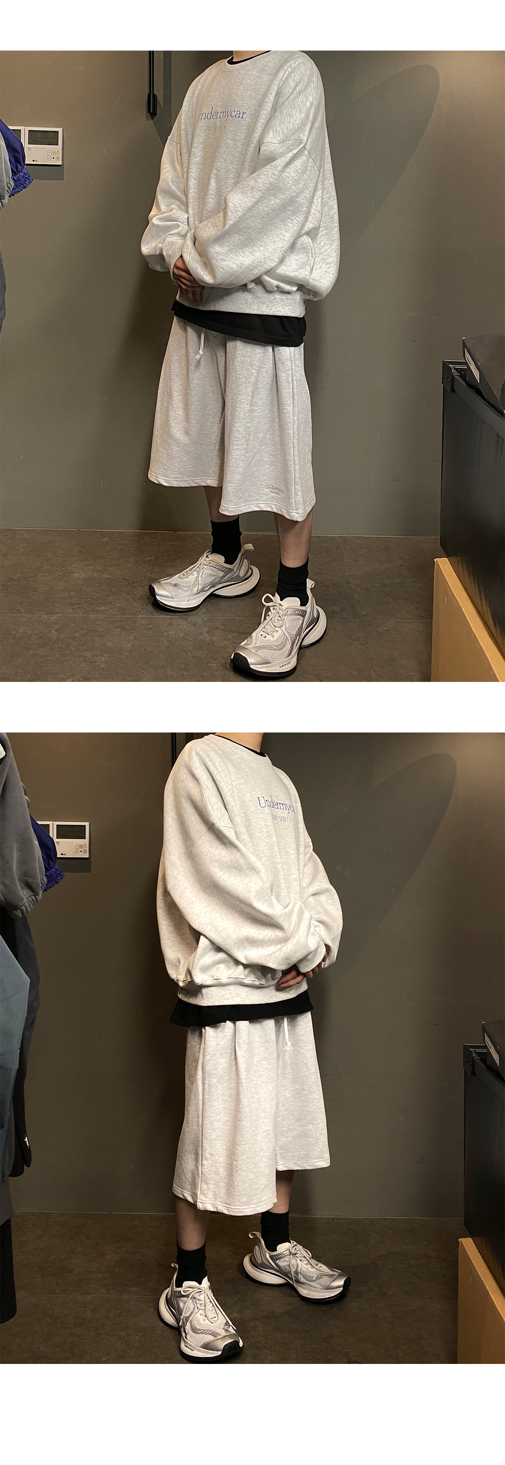 Undermycar Mu.16 Anti Fxxking Logo Play Oversized One Tuck Sweat Shorts Light Melange
