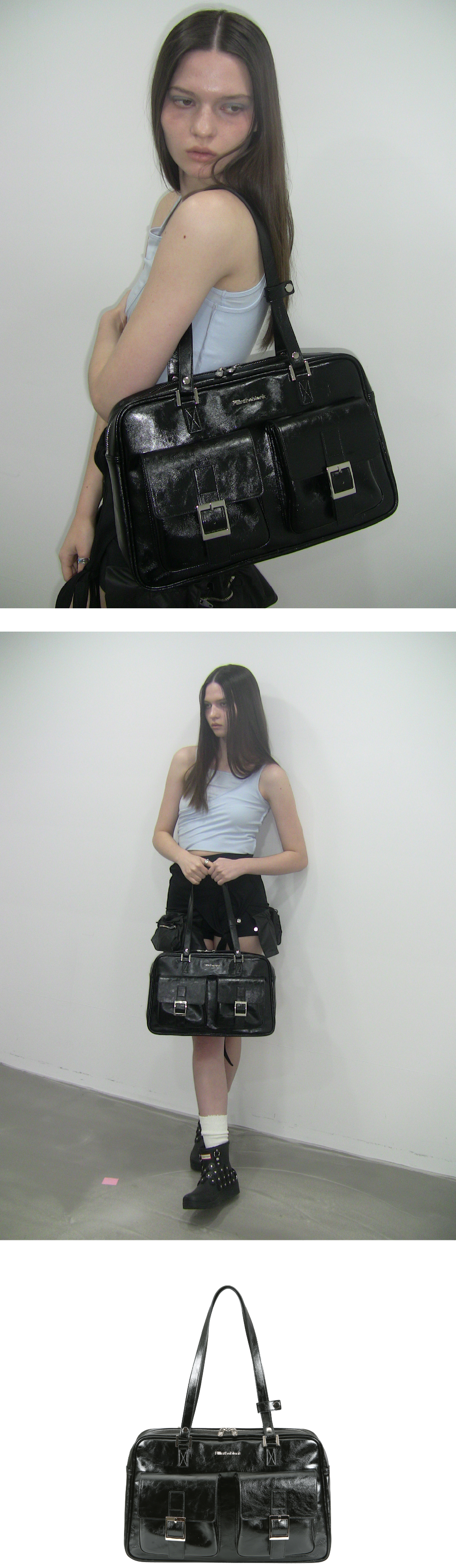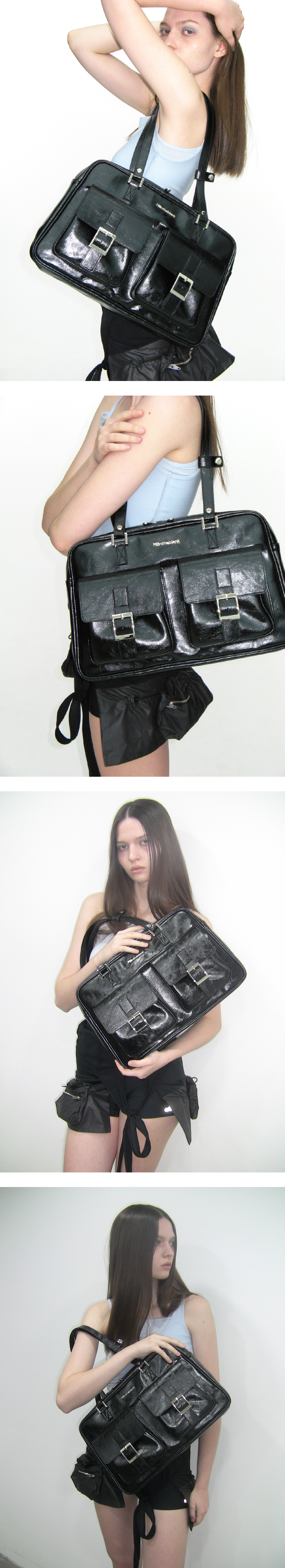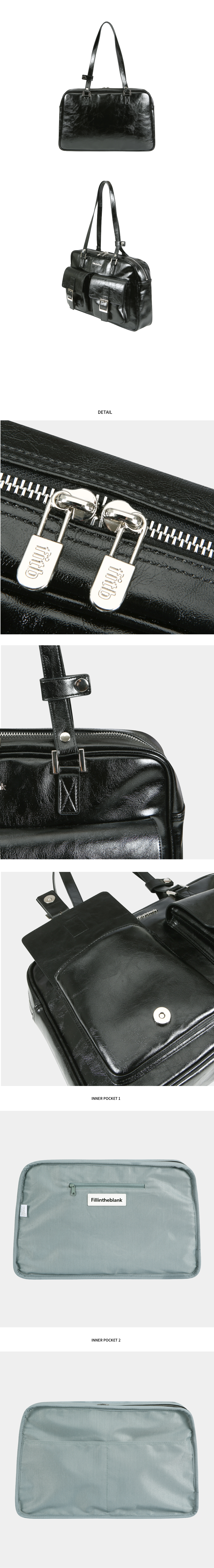필인더블랭크 피케이 숄더백 글로시 블랙