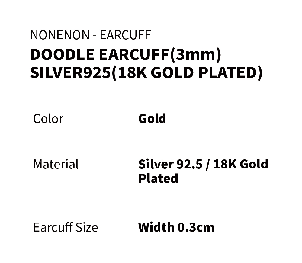 Nonenon Doodle Earcuff 3mm Silver925 18K Gold Plated