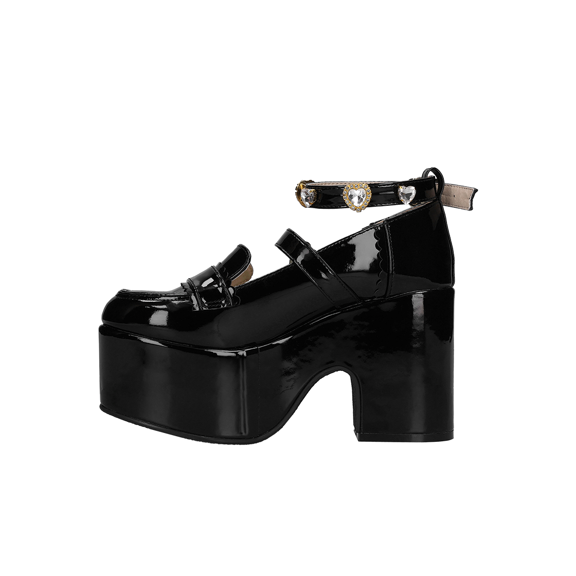 (W) Liz Lisa Heart Bijoux Platform Loafers Black Enamel
