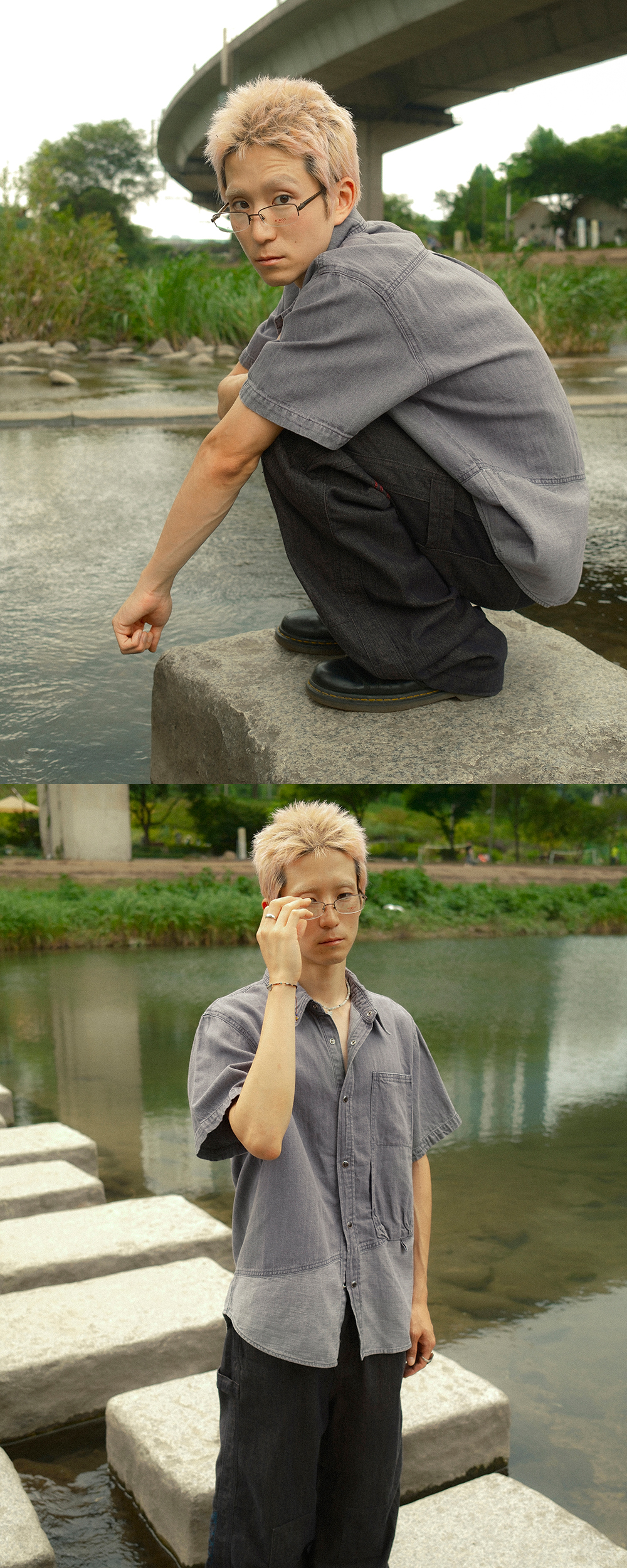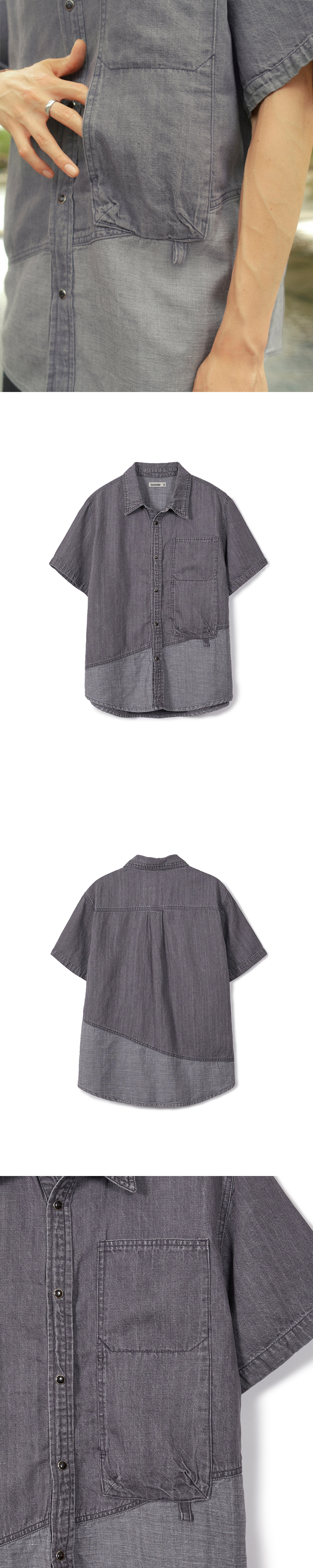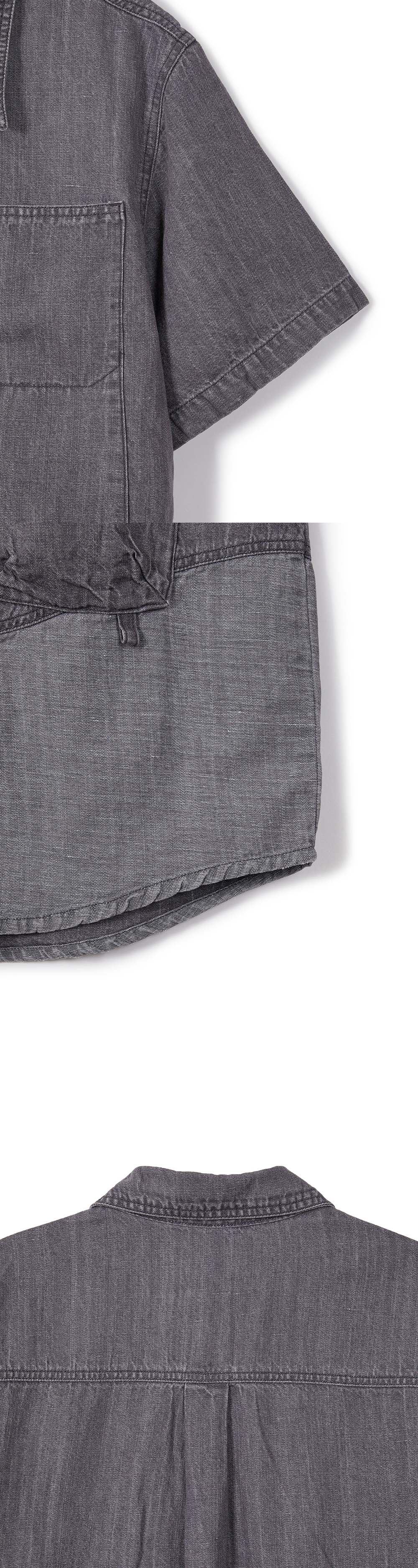 카락터 린넨 데님 워크 하프 셔츠 애쉬 퍼플