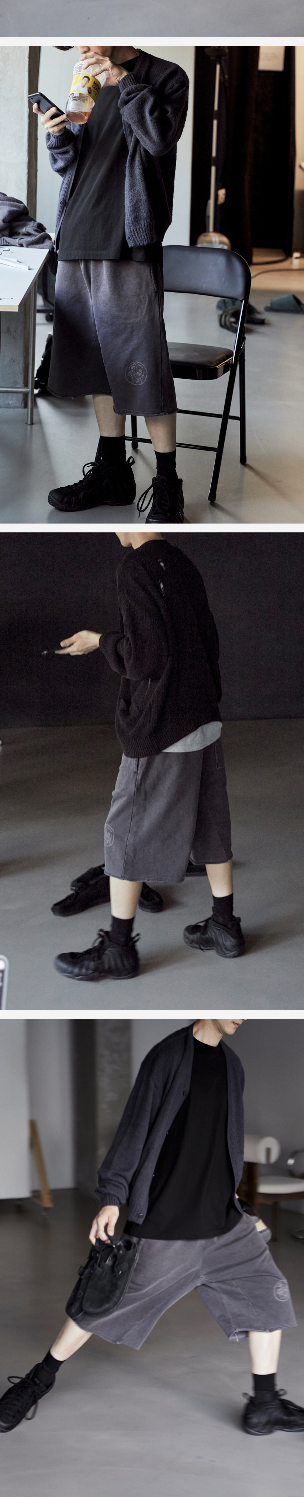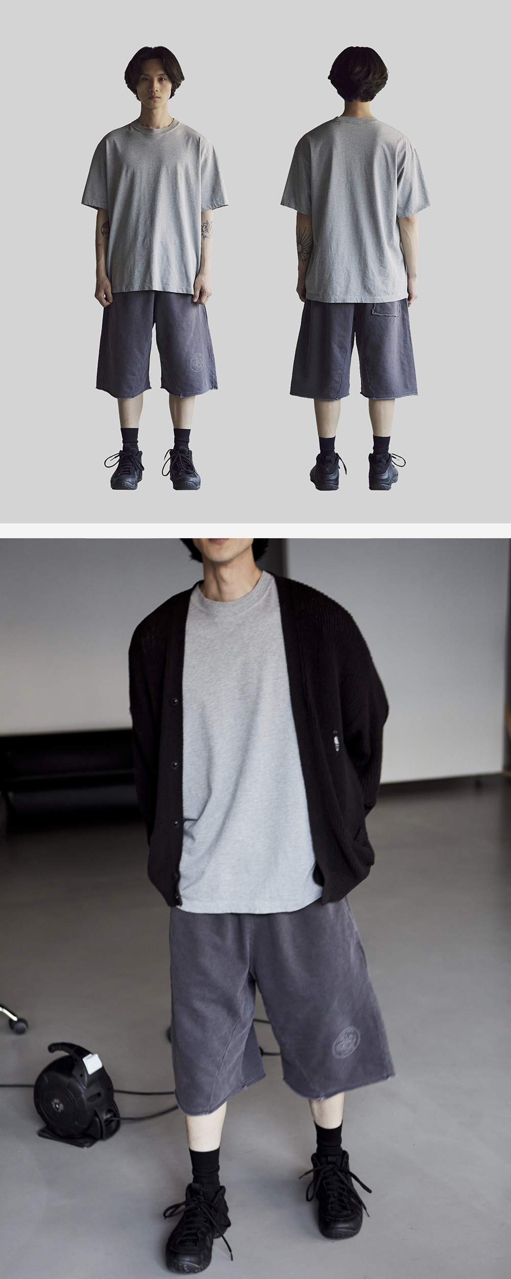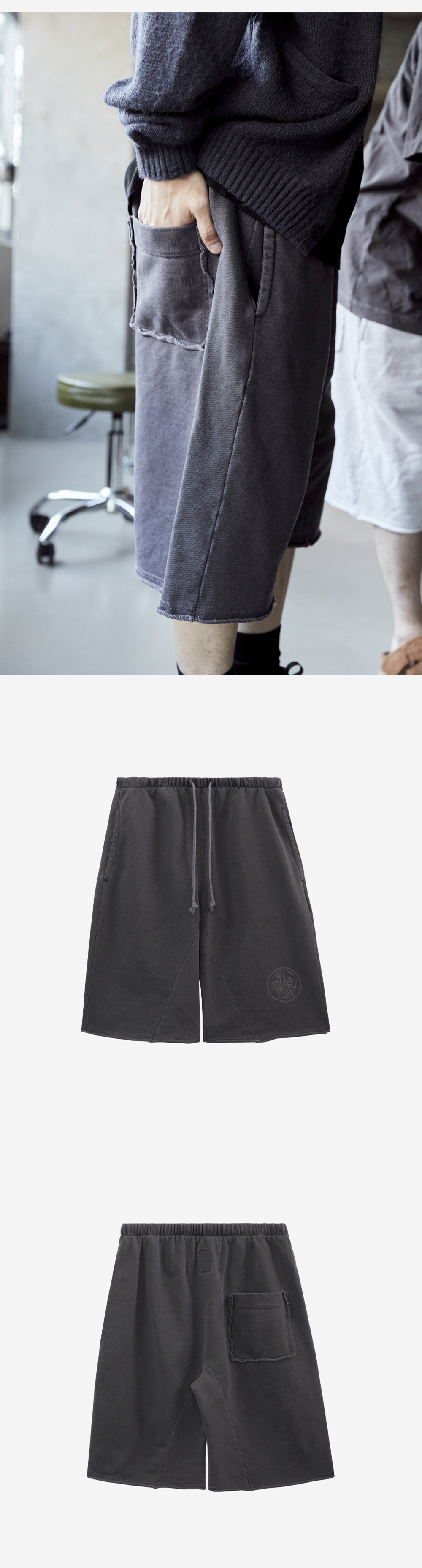 1/2 sweat pants * 넉넉한 실루엣의 하프 스웻팬츠 * 무릎을 가리는 길이감 * 러프한 마감 * 인심의 사선 배색 * 밴딩 웨이스트 * 가먼트 다잉