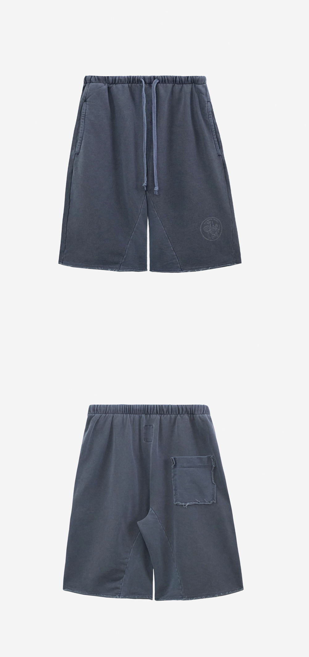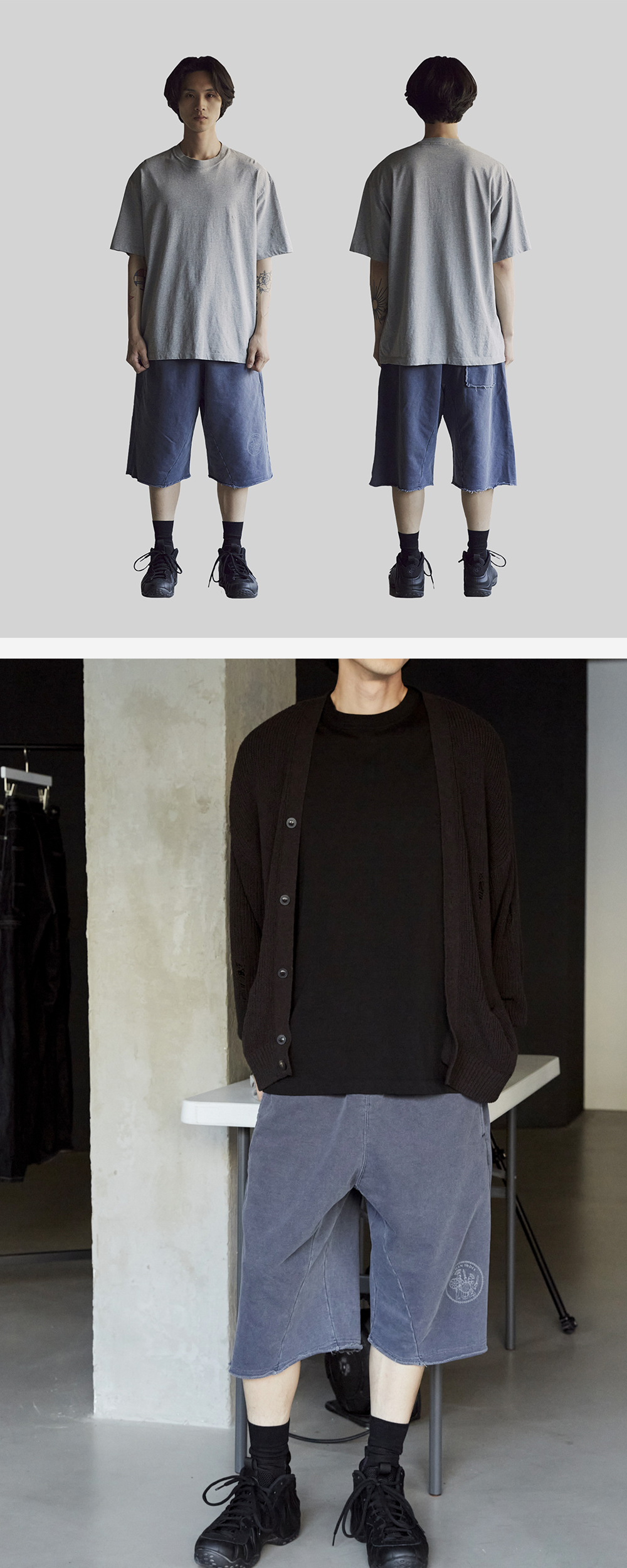 1/2 sweat pants * 넉넉한 실루엣의 하프 스웻팬츠 * 무릎을 가리는 길이감 * 러프한 마감 * 인심의 사선 배색 * 밴딩 웨이스트 * 가먼트 다잉
