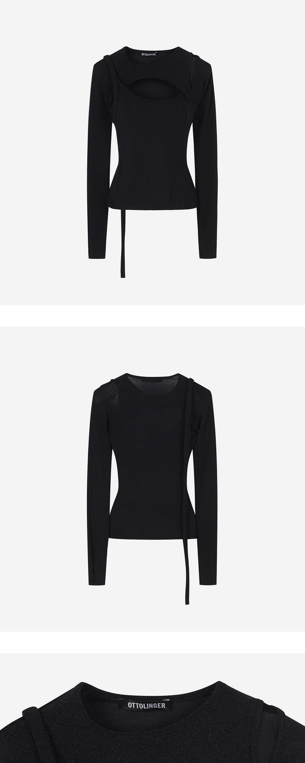 오토링거 우먼 레이어드 컷 아웃 롱슬리브 블랙 샤인 - 24FW