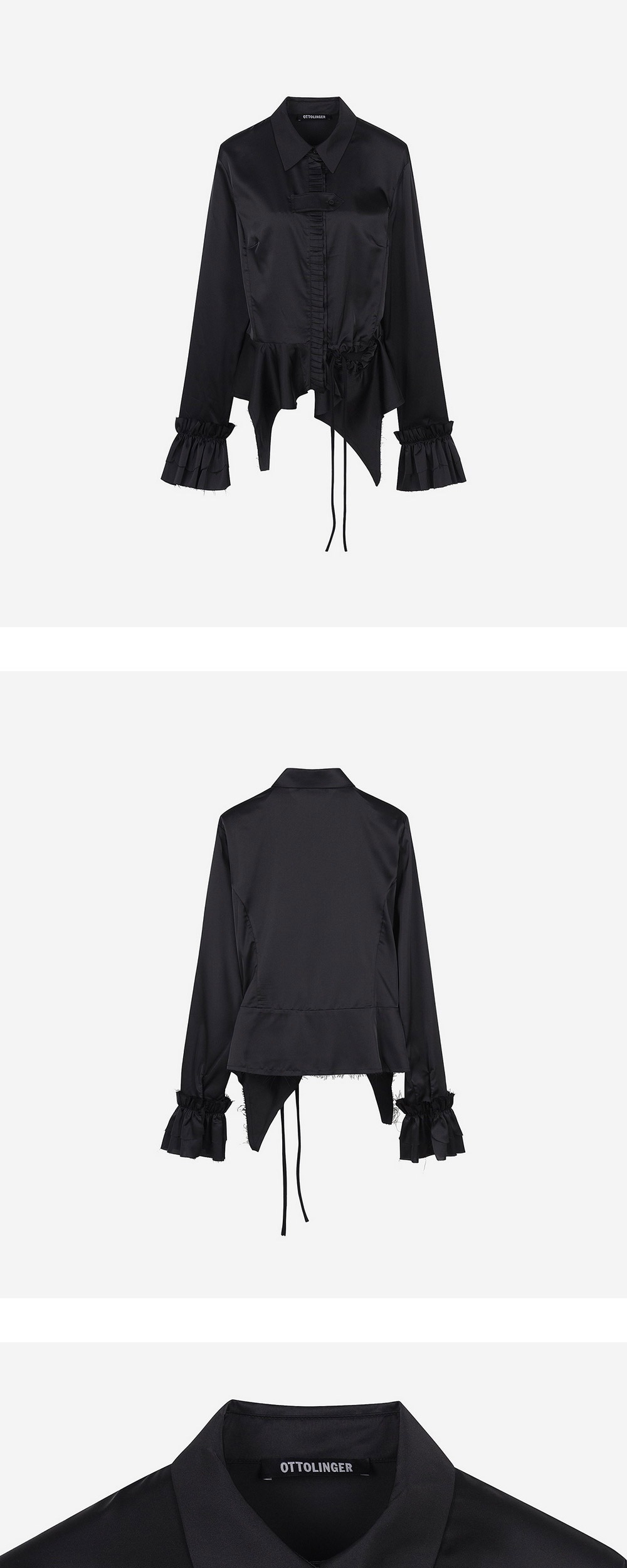 오토링거 우먼 러치드 롱슬리브 블라우스 블랙 - 24FW