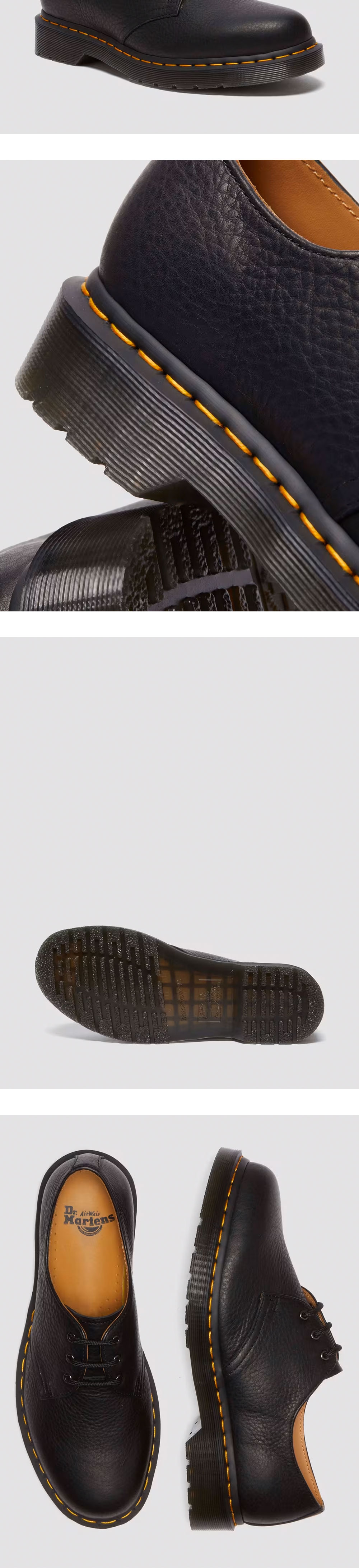 닥터마틴의 1461 앰버서더 레더 슈즈는 클래식한 1461 옥스퍼드 슈즈를 럭셔리한 앰배서더 가죽으로 재구성한 제품입니다. 부드러운 감촉의 오일 처리된 텀블 소재와 노란색 스티칭, 시그니처 홈 패턴으로 마감된 솔이 특징입니다. - 홈이 파진 가장자리, 노란 스티칭과 같은 닥터마틴의 DNA로 제작 - 텀블 처리하여 무게를 더한 앰버서더 가죽