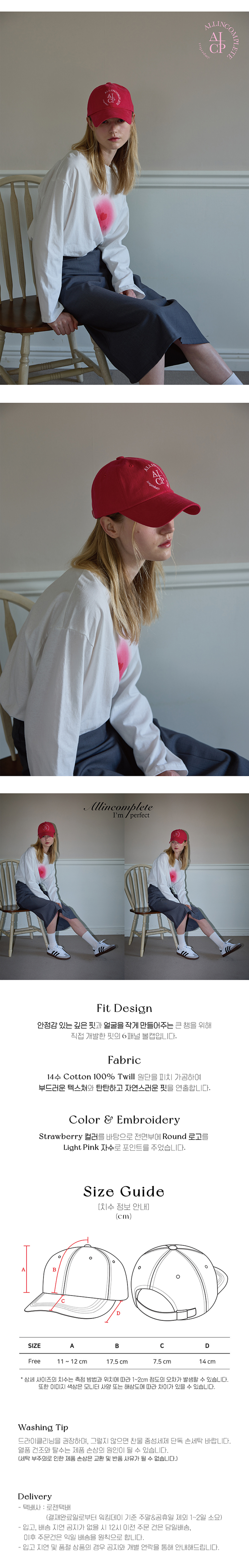 올인컴플리트 라운드 로고 볼캡 스트로베리