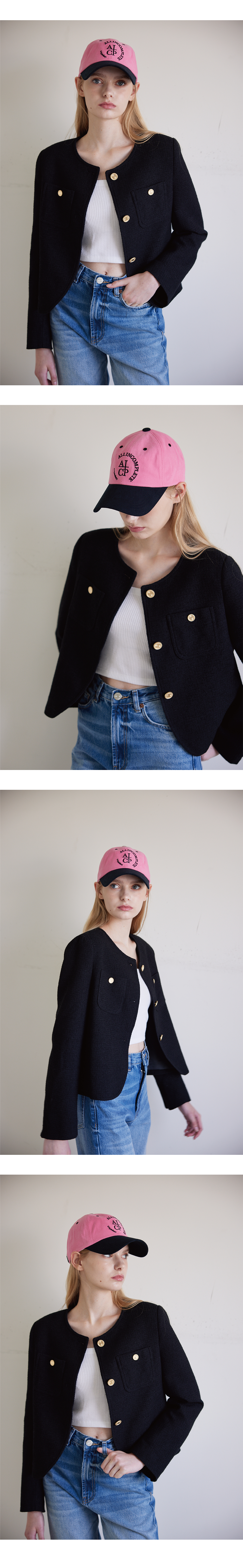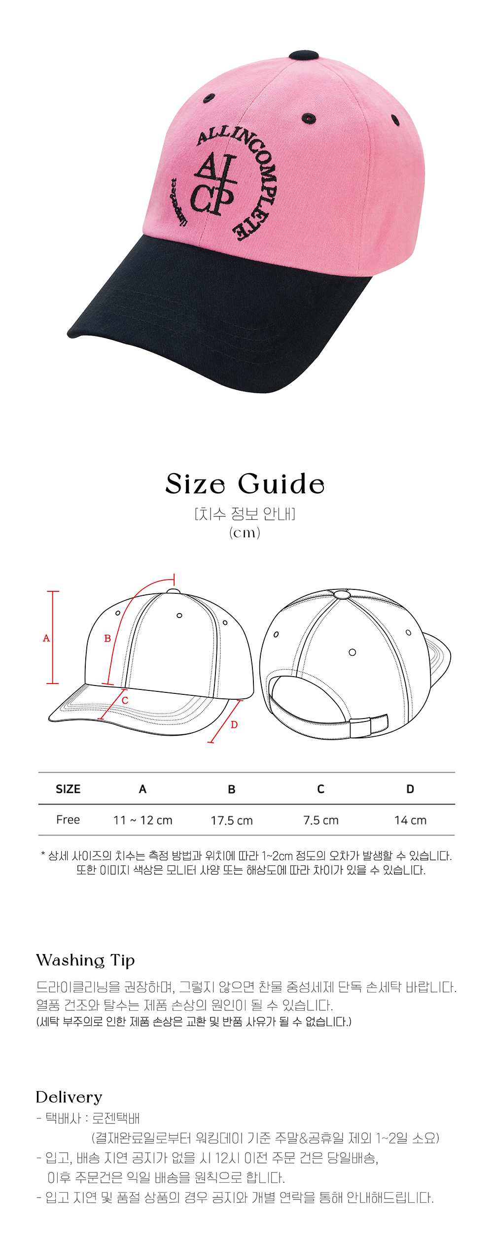 올인컴플리트 라운드 로고 두톤 볼캡 블랙 & 핑크