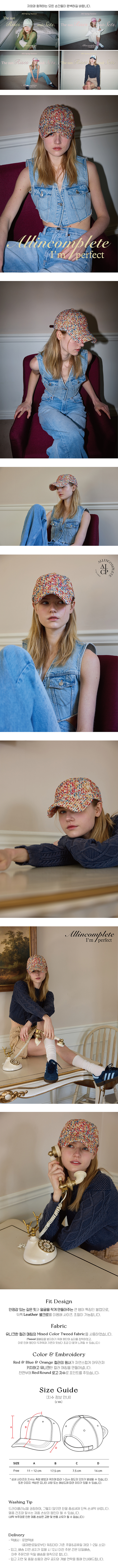 올인컴플리트 라운드 로고 트위드 볼캡 레드 & 블루 & 오렌지