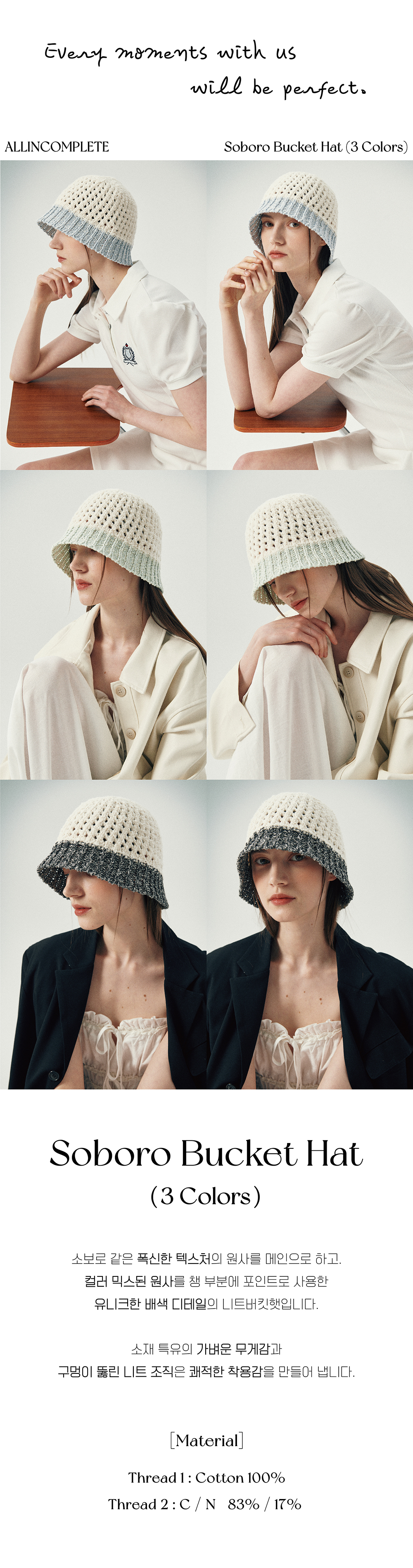 올인컴플리트 소보로 버킷햇 스카이 블루