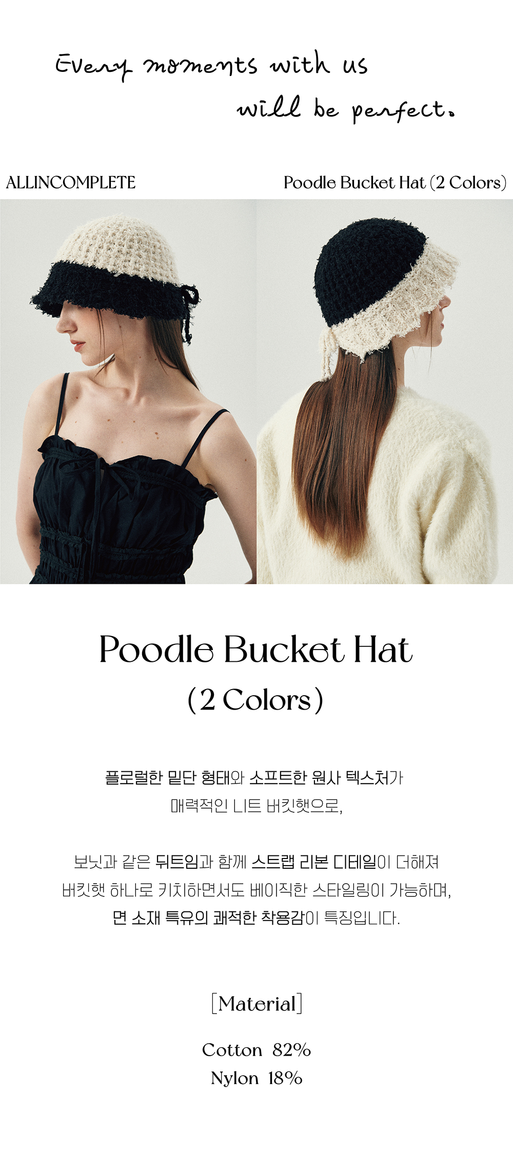 올인컴플리트 푸들 버킷햇 아이보리 & 블랙