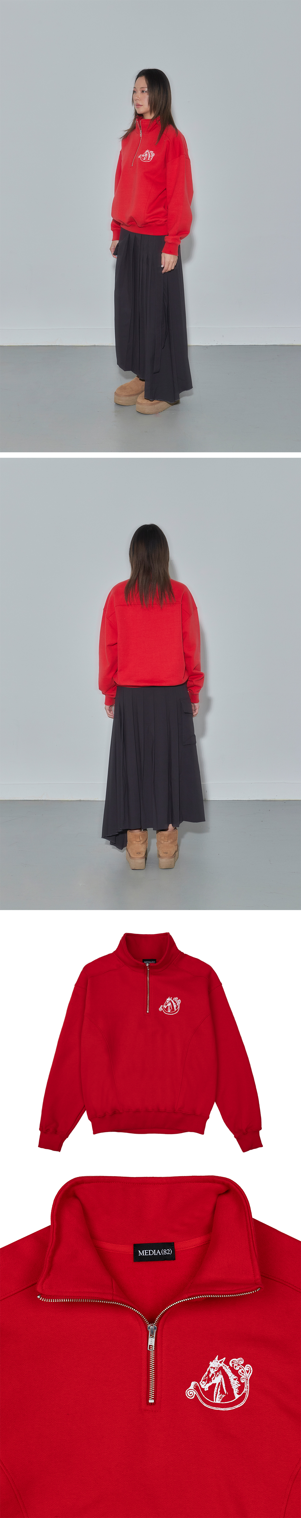 MEDIA(82) Horse Half Zip-up Sweatshirts Red