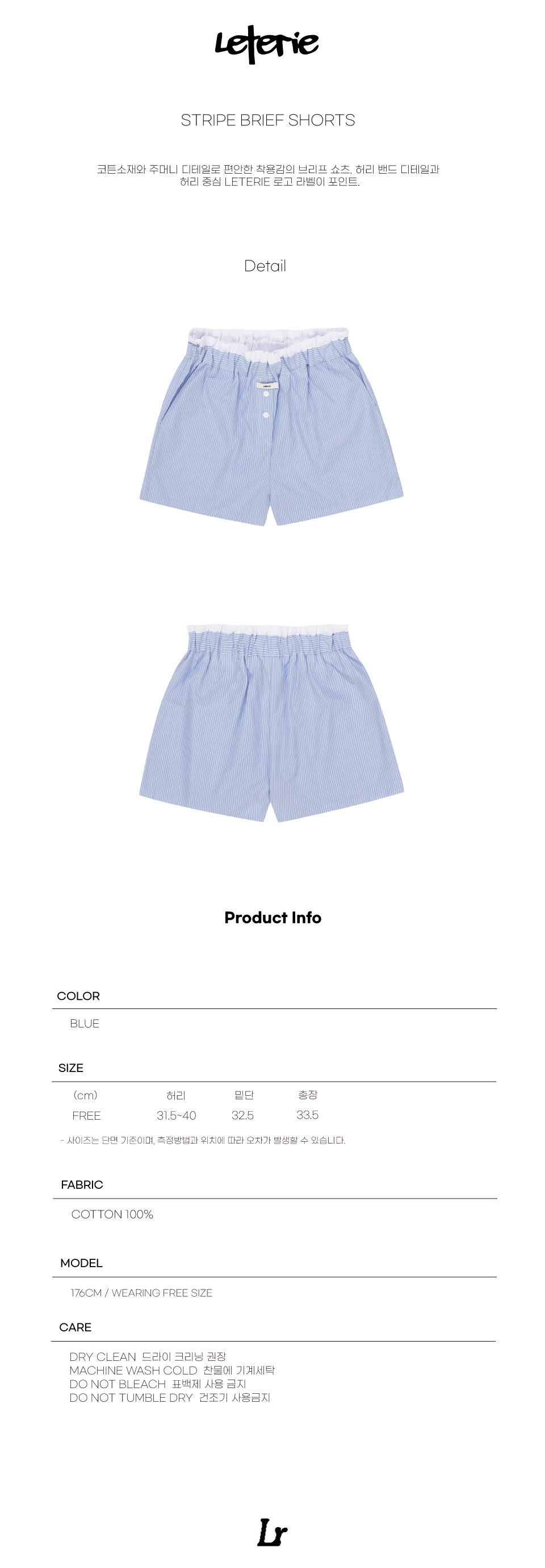 레터리 스트라이프 브리프 쇼츠 블루