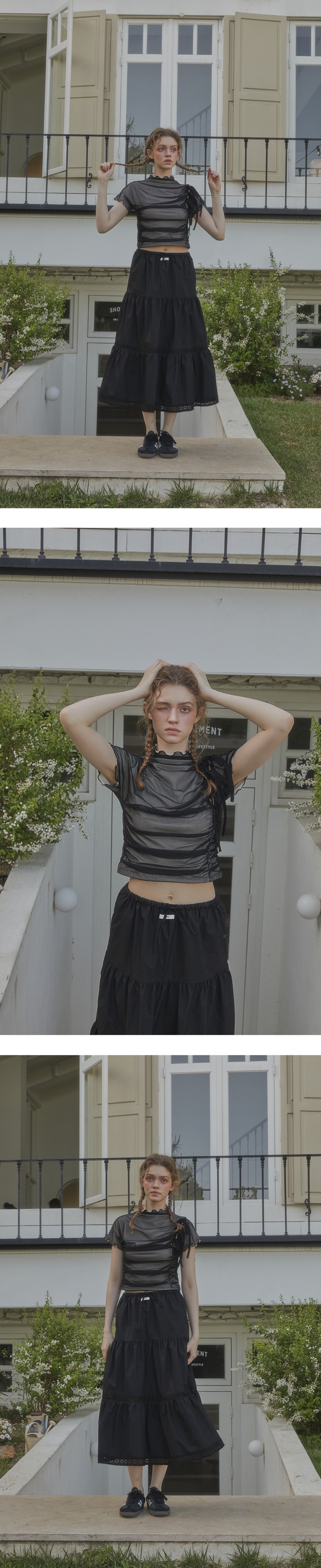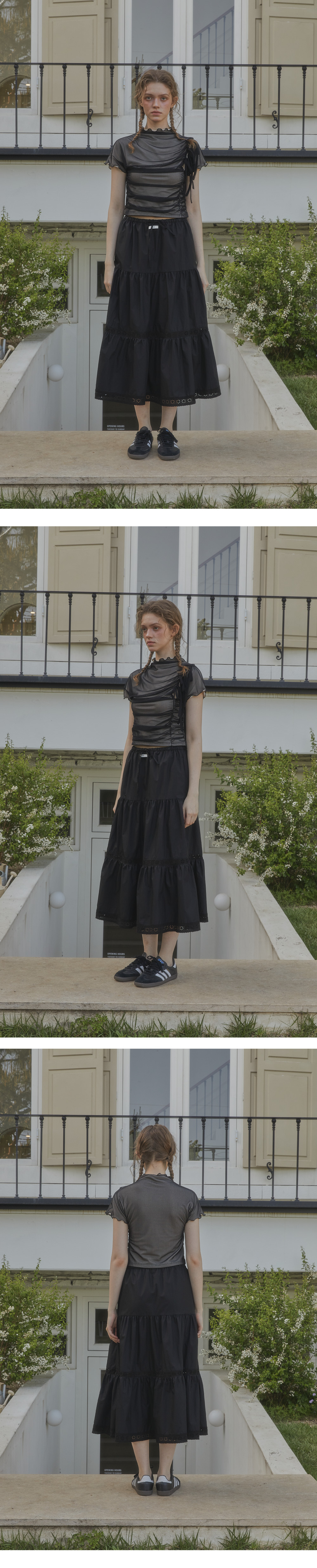 레터리 캉캉 레이스 스커트 블랙
