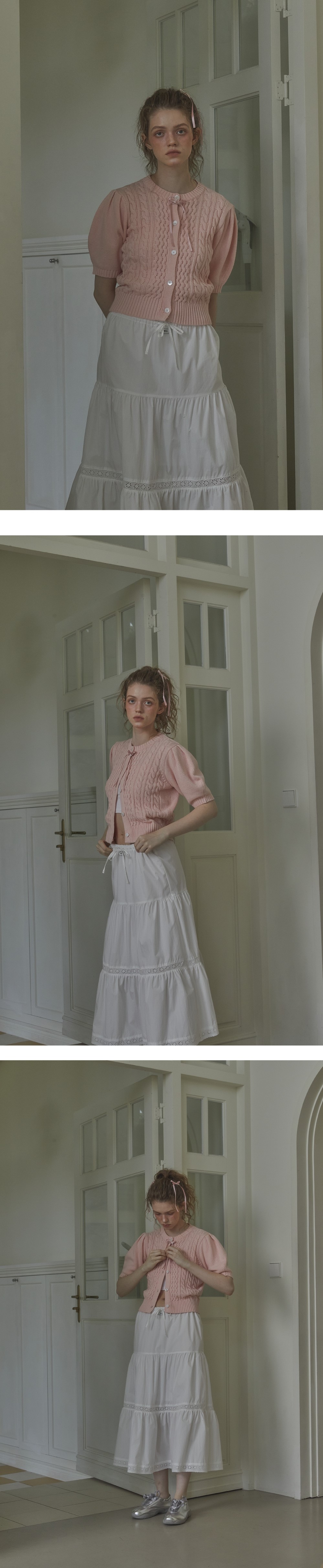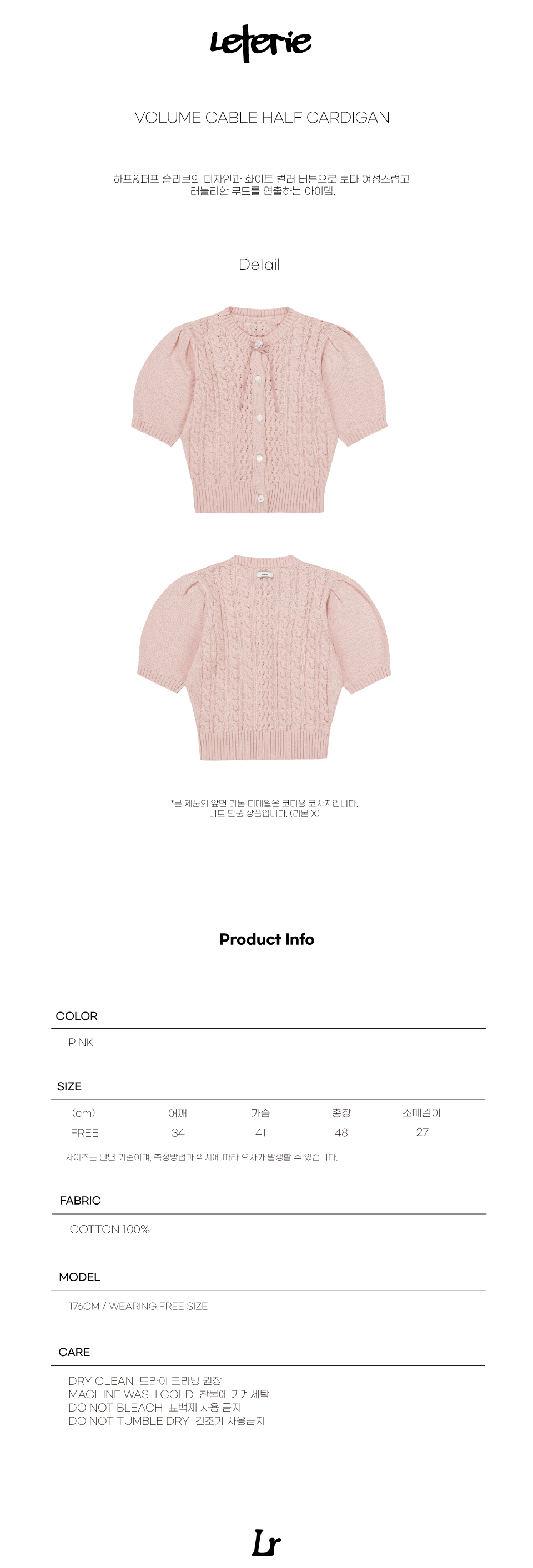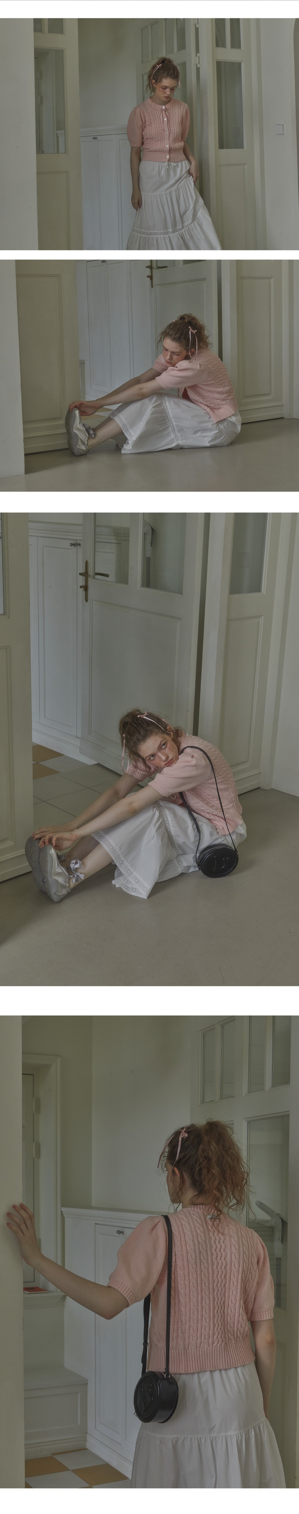 Leterie Volume Cable Half Cardigan Pink
