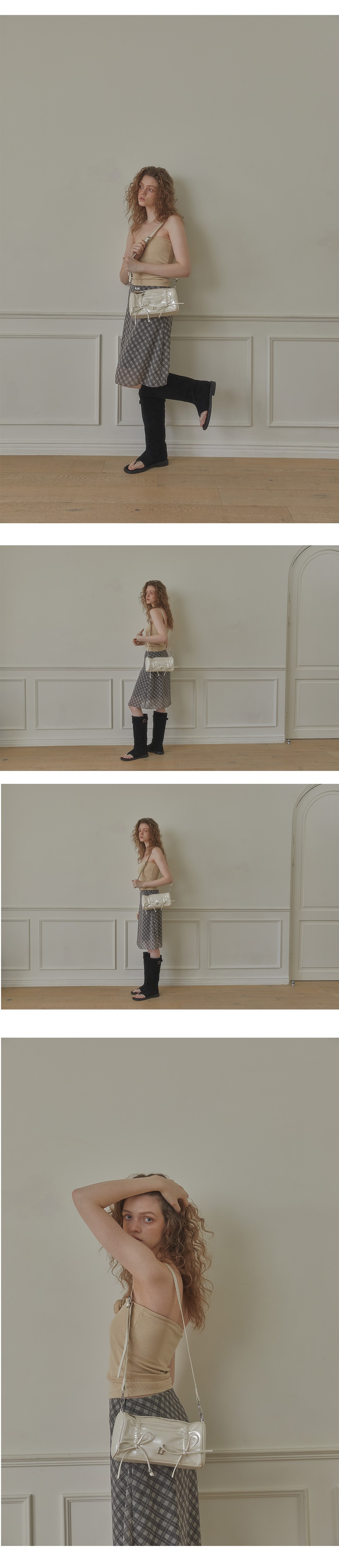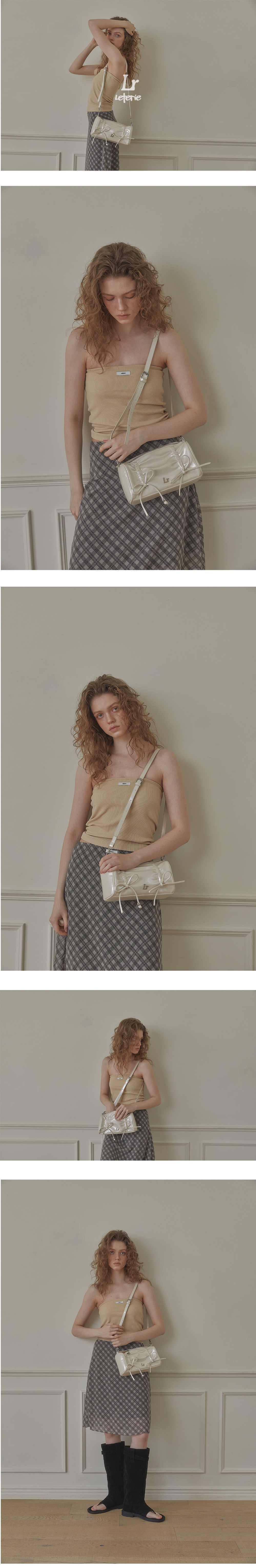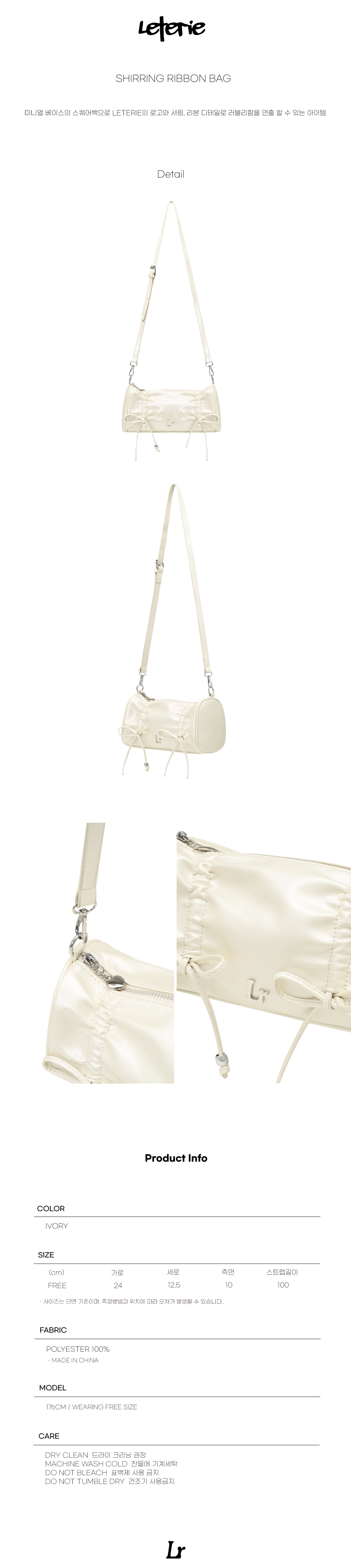 레터리 셔링 리본 백 아이보리