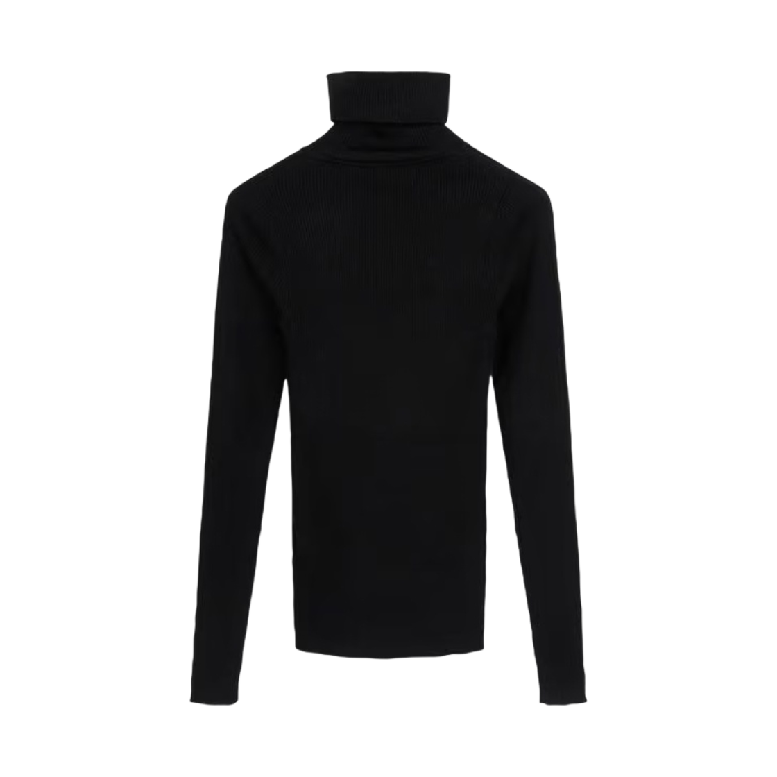(W) 캘빈 클라인 슬림 립드 롤 넥 점퍼 CK 블랙