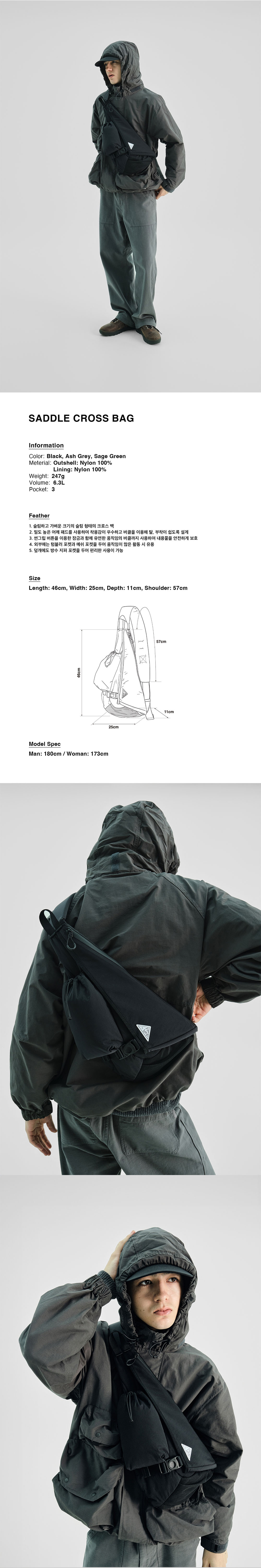 파운드 포켓 새들 크로스 백 블랙