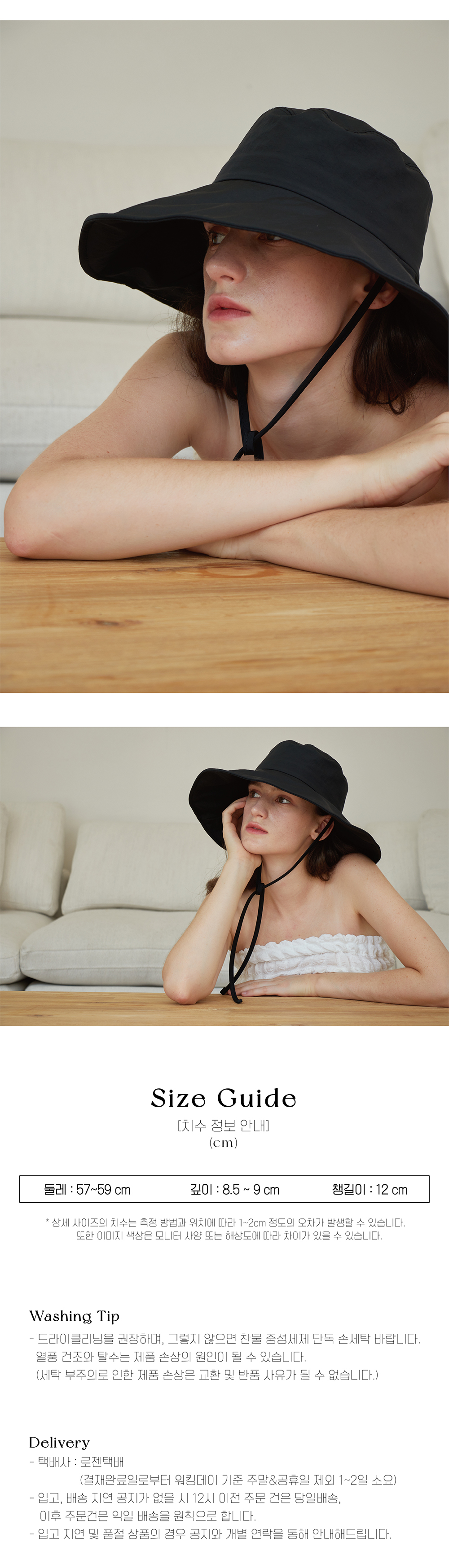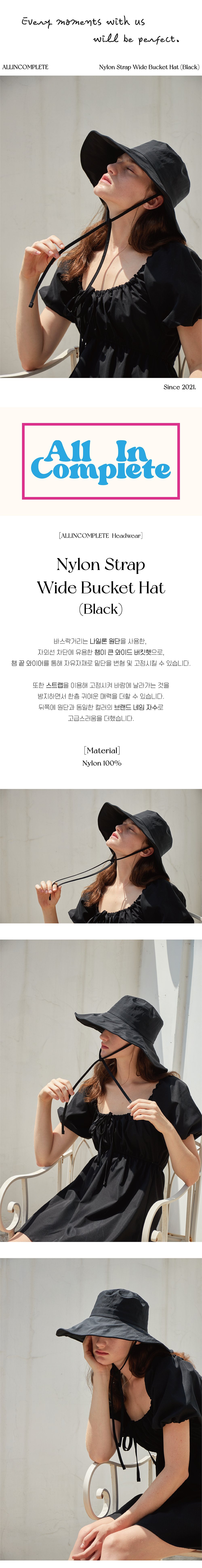 올인컴플리트 나일론 스트랩 와이드 버킷햇 블랙