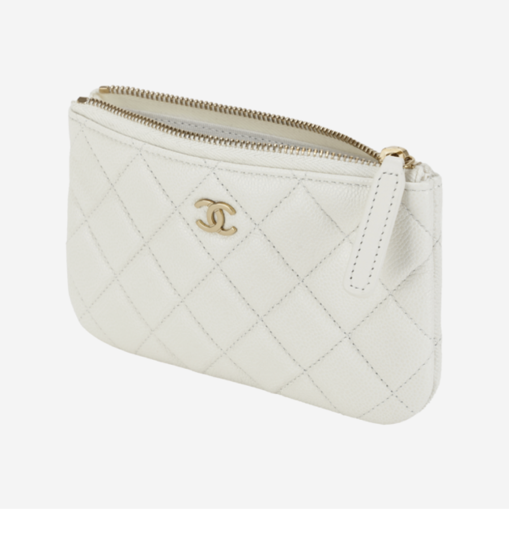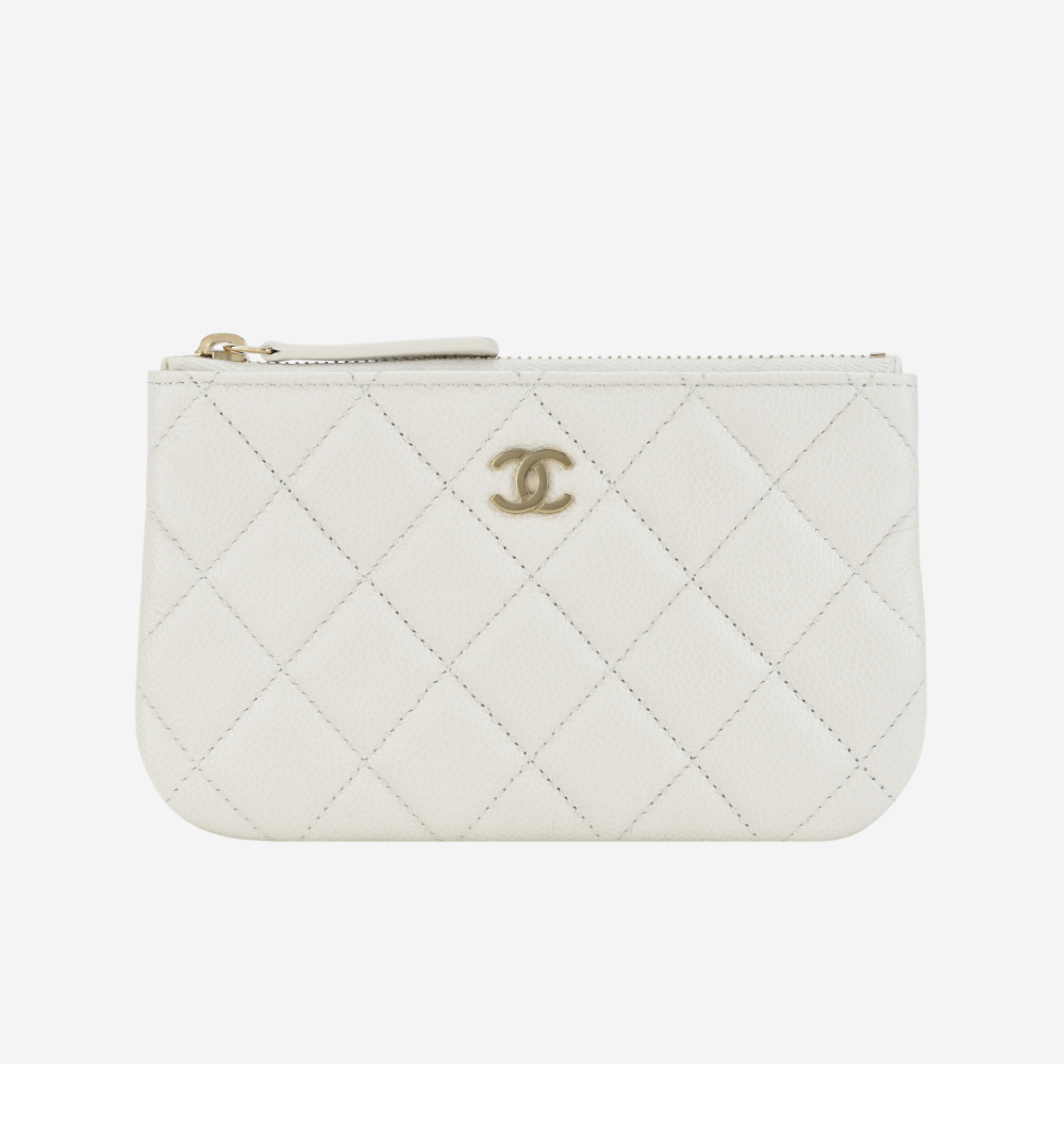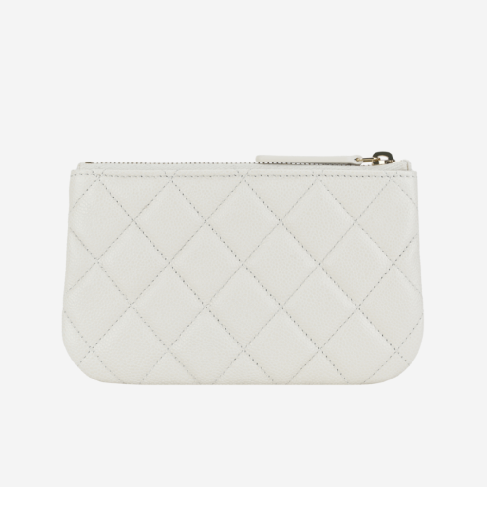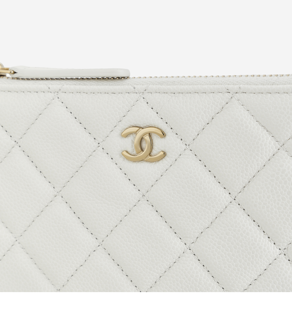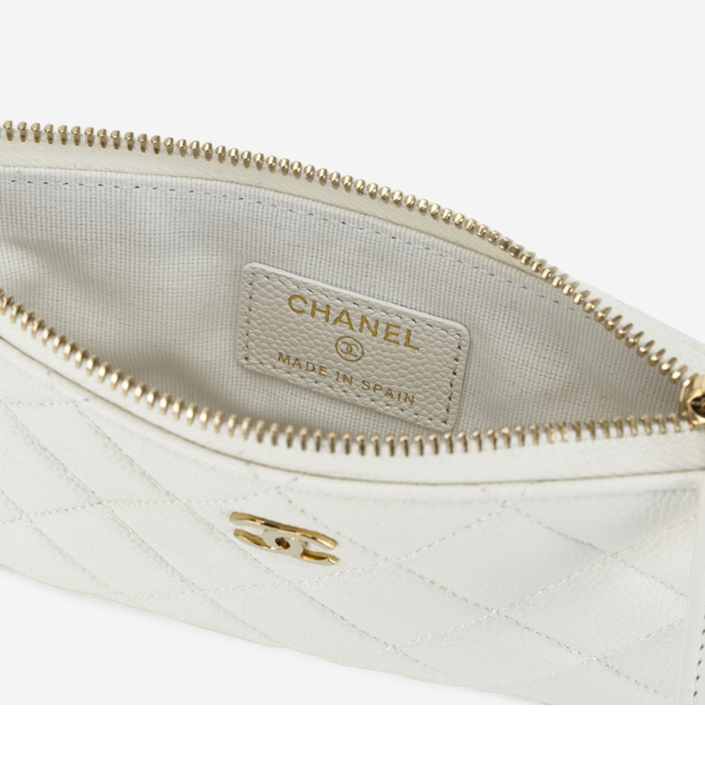 샤넬 클래식 지퍼 케이스 그레인드 샤이니 카프스킨 & 골드 메탈 화이트
