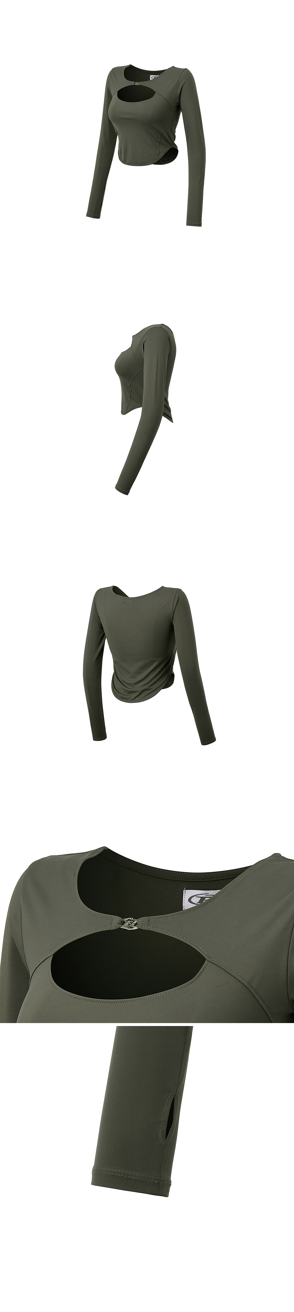 [DETAILS] * B 버클 컷아웃 롱슬리브 - 편안한 착용감의 슬림핏 - 체형을 돋보이는 크롭한 기장 Material : Polyester 80% Polyurethane 20% Fittiing : F Size, 171cm, 57kg