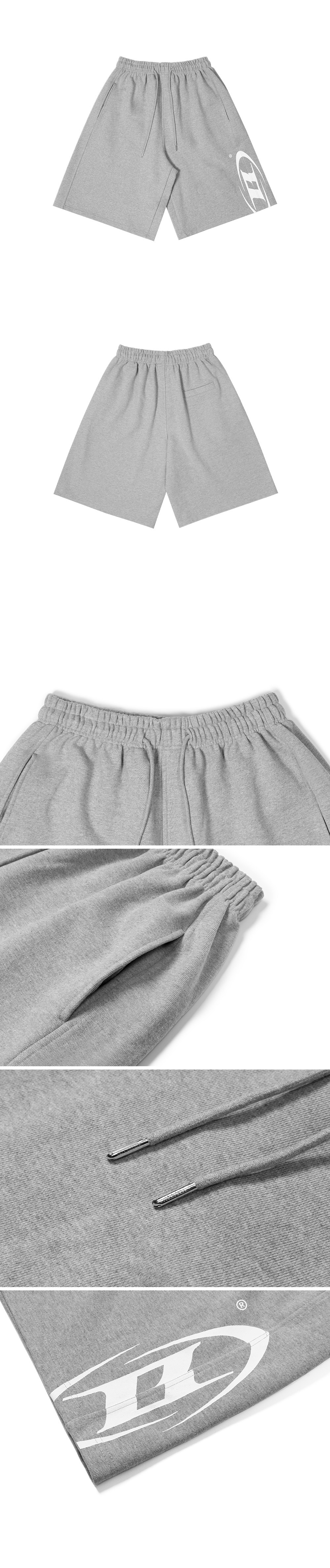 본투윈 사이드 B 로고 하프 팬츠 멜란지 그레이
