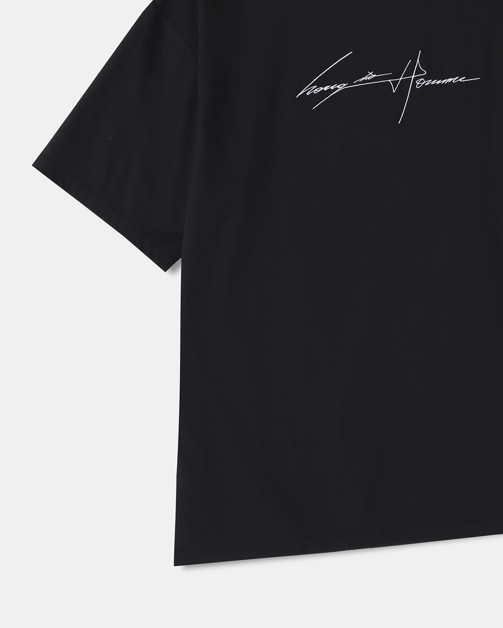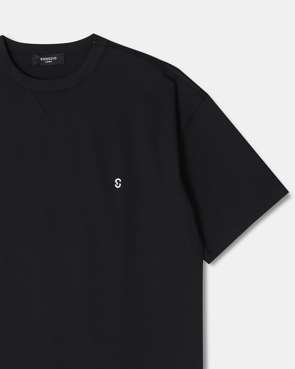 - 어시매트릭 오토그래프 티셔츠 - 전면 송지오옴므 S 엠블럼 로고 자수 - 후면 송지오옴므 사인 자수 포인트