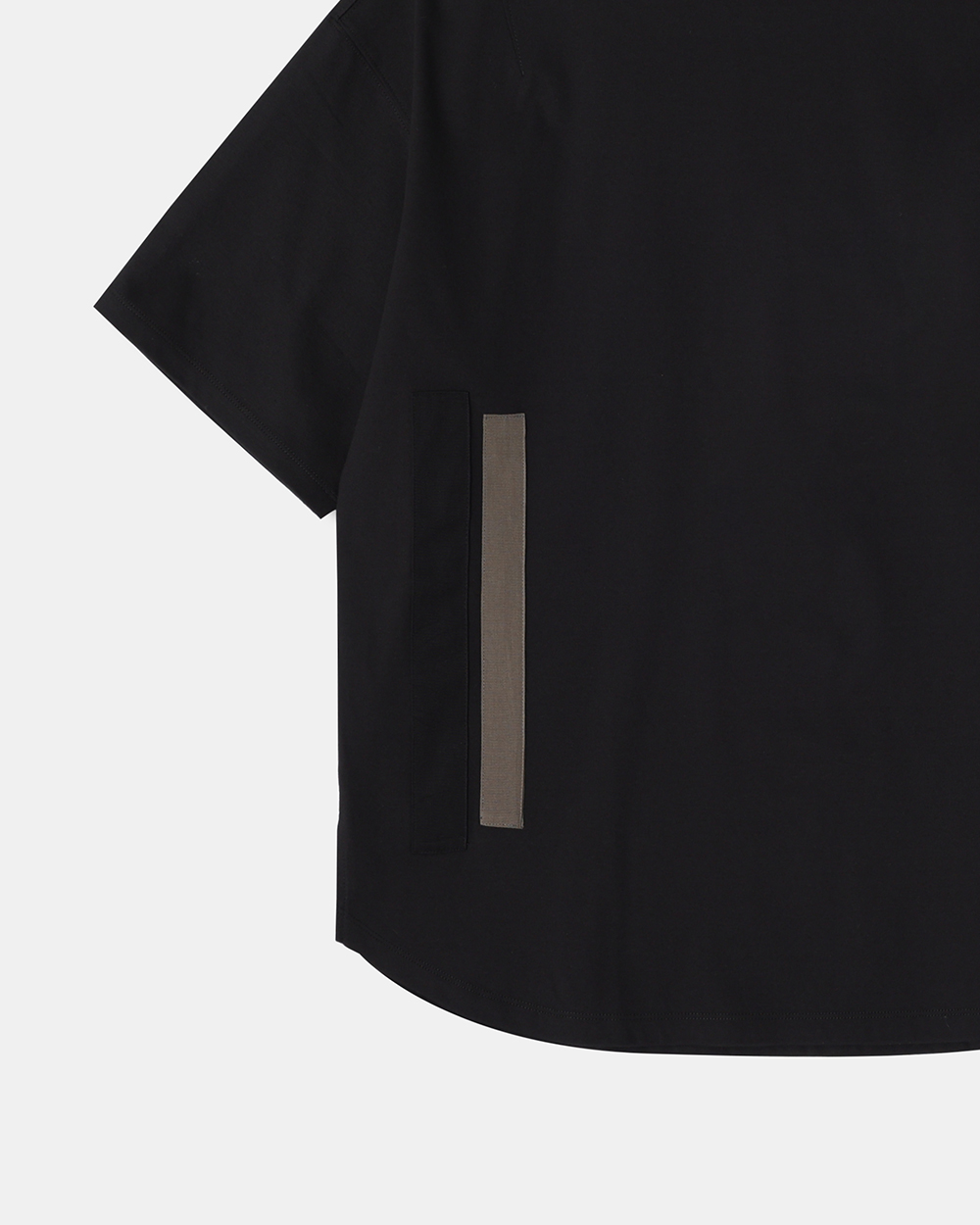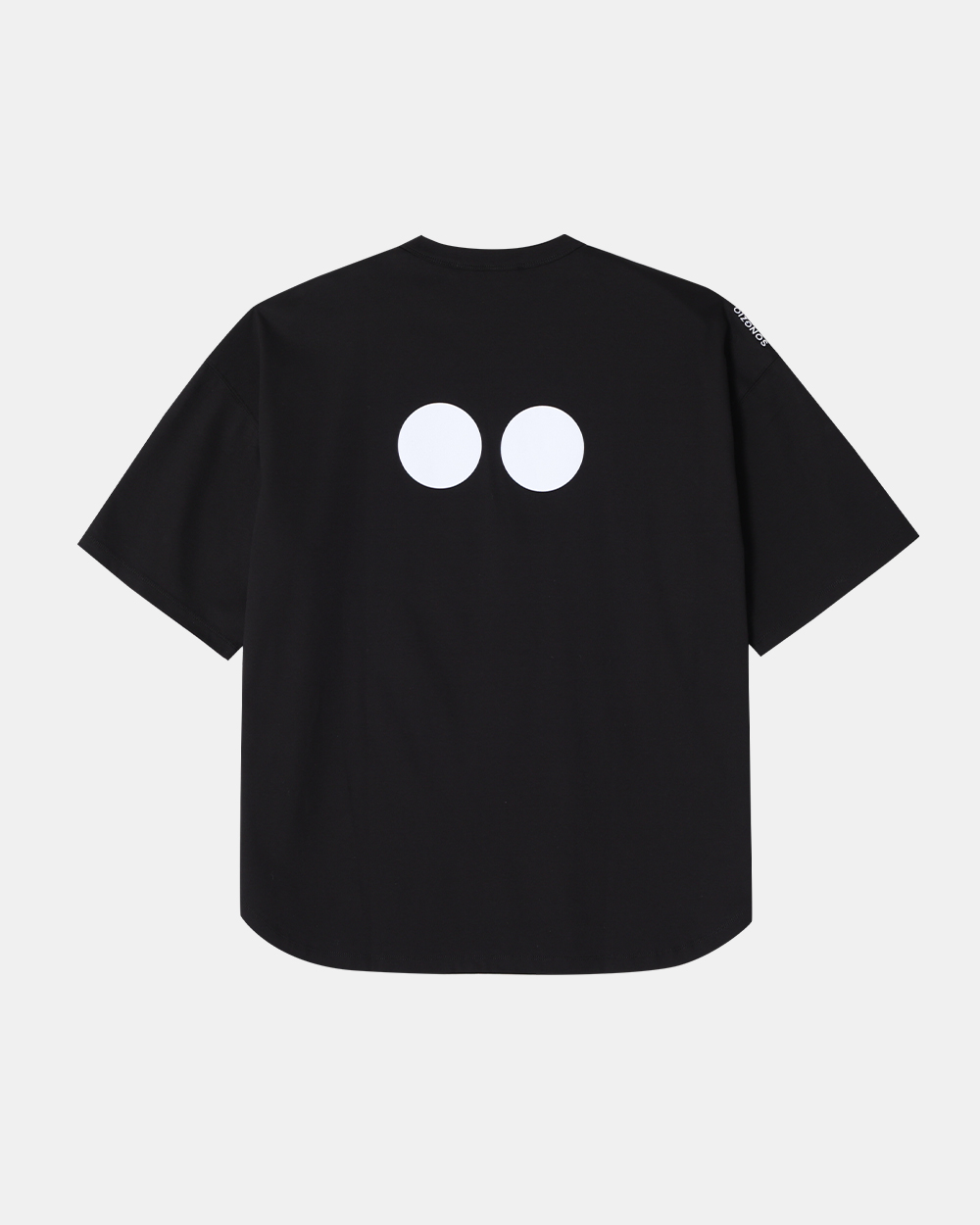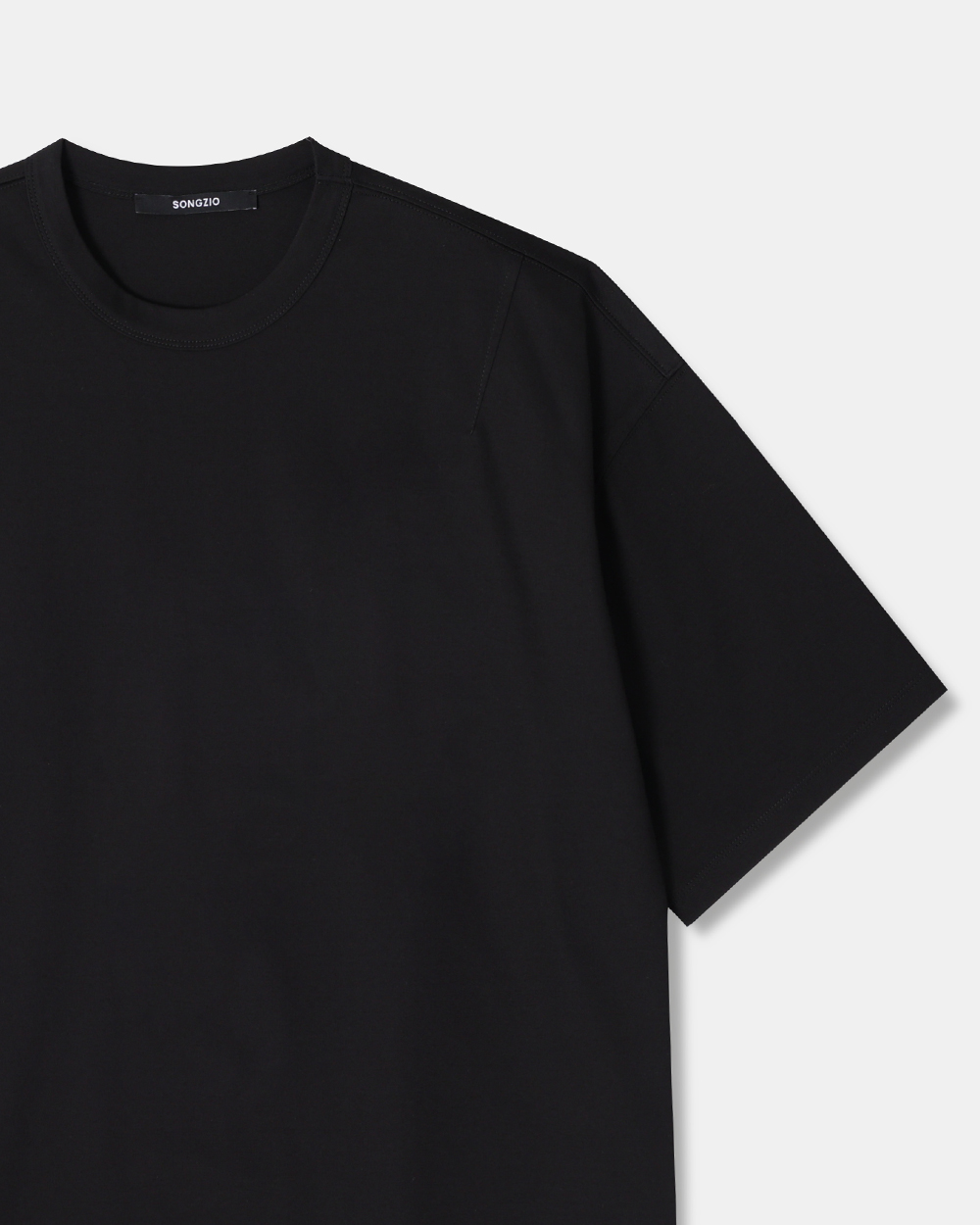 - 송지오 라인 오버사이즈 반팔 티셔츠 - 전면 어깨 다트와 더블 스퀘어 TAPE 포인트 - 후면 송지오 블랙 아이즈 로고 후로피 프린트 아트워크 - 후면 오른쪽 어깨 송지오 폰트 자수