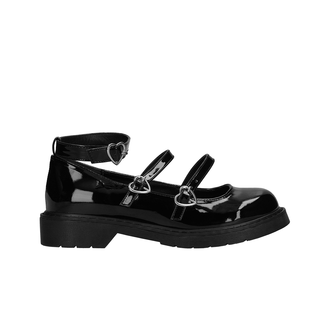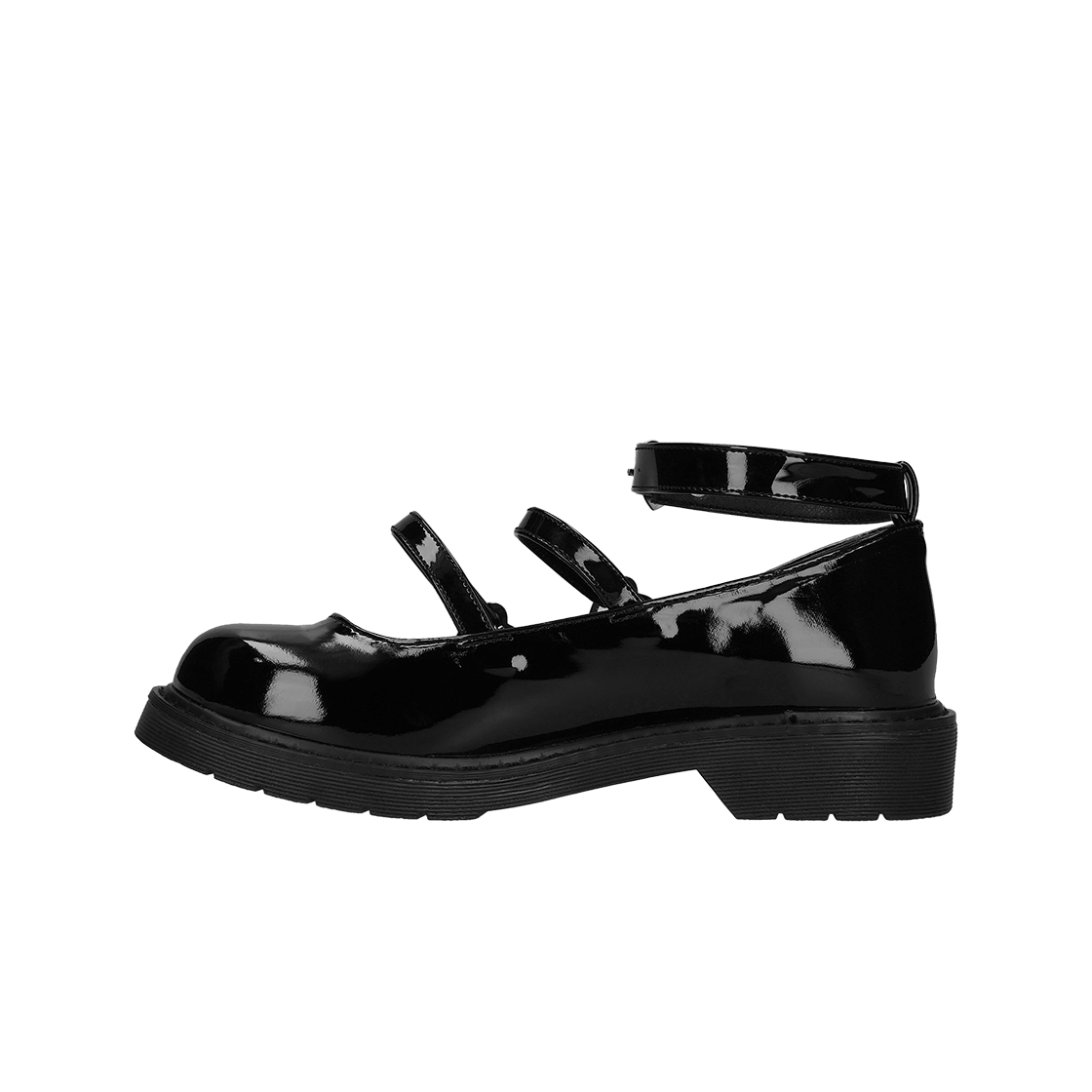 (W) Dear My Love Cross Belt Ribbon Low Heel Princess Pumps Patent All Black