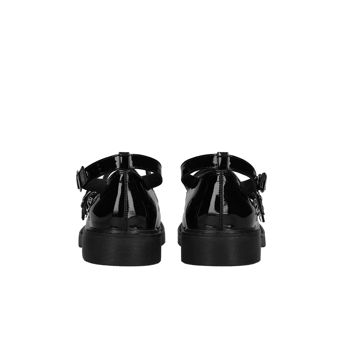 (W) 디어 마이 러브 크로스 벨트 리본 로우 힐 프린세스 펌프스 페이턴트 올 블랙
