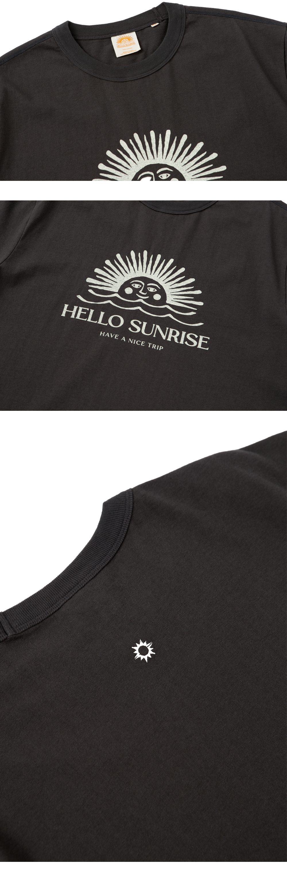 헬로선라이즈 오리지널 프린팅이 들어간 반팔 티셔츠입니다. 스탠다드 핏으로 어깨 봉제를 오드람프로 하여 퀄리티를 높였습니다. 뒤판 작은 심볼을 자수 처리하여 포인트를 주었습니다. * Cotton 100% Made in Korea