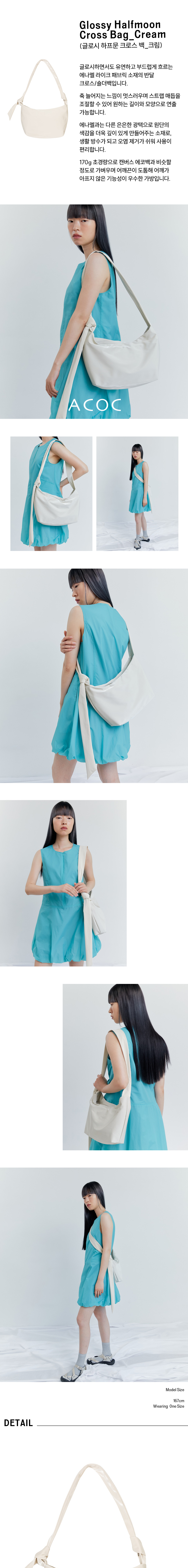 아코크 글로시 하프문 크로스백 크림