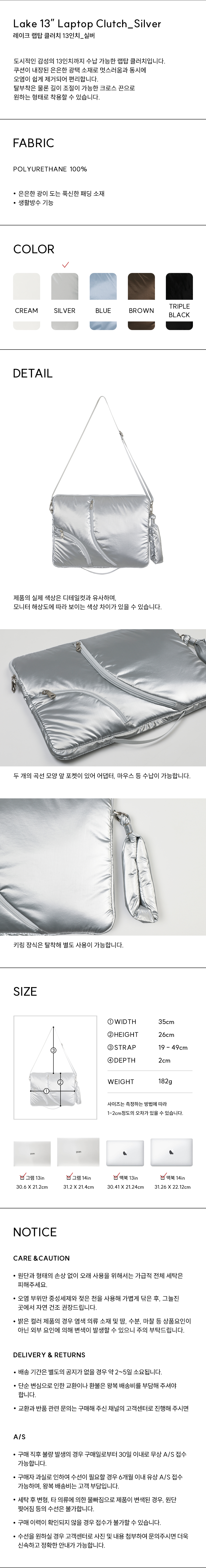 아코크 레이크 13 랩탑 클러치 실버