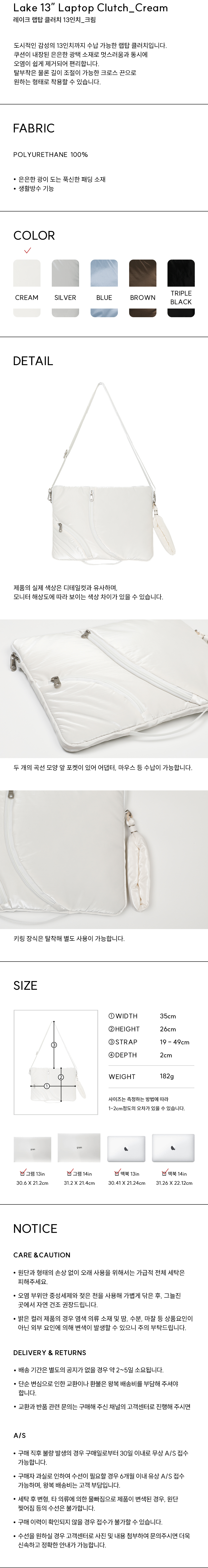 아코크 레이크 13 랩탑 클러치 크림