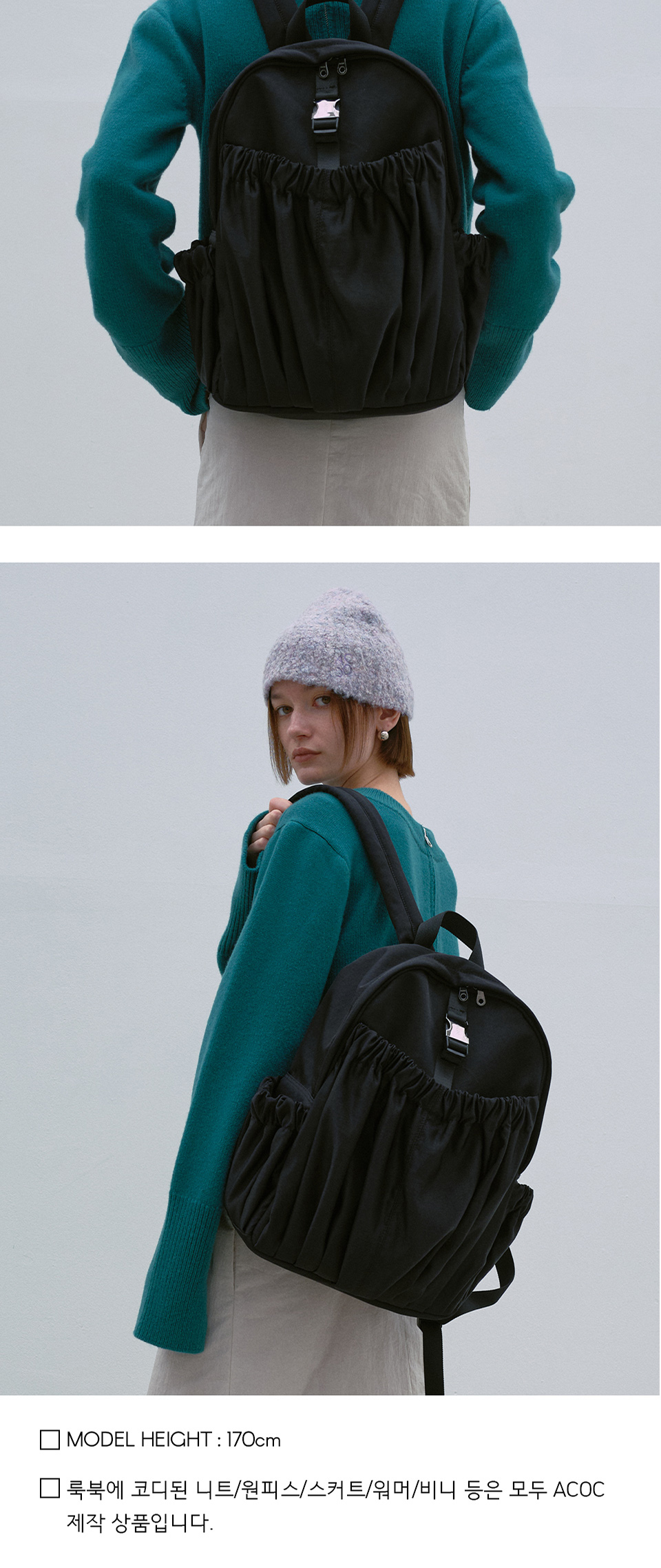 아코크 개더드 백팩 블랙