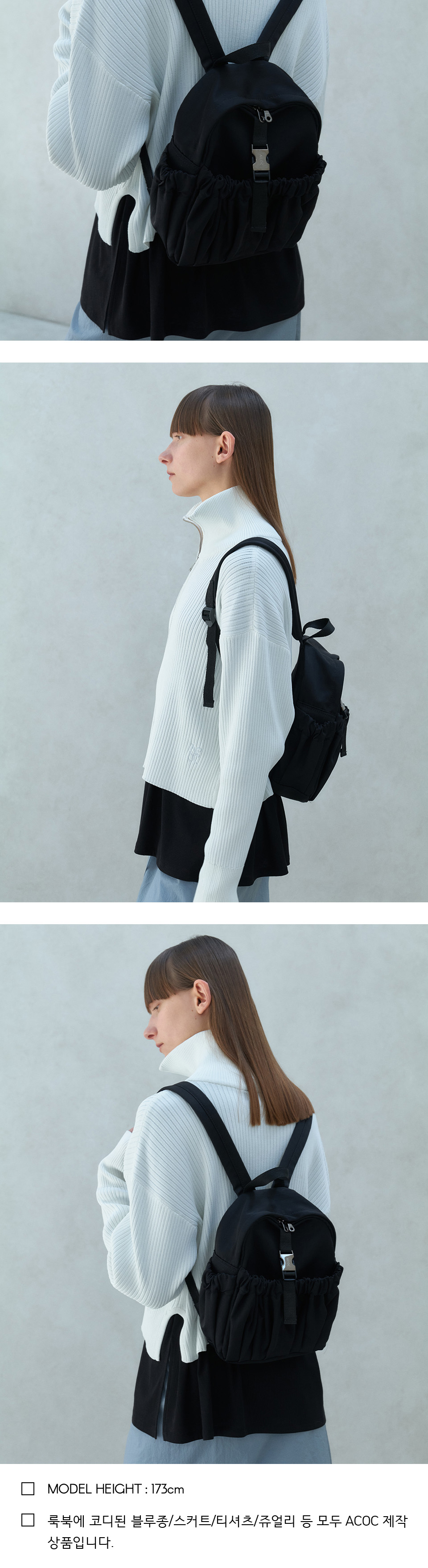 아코크 개더드 미니 백팩 블랙