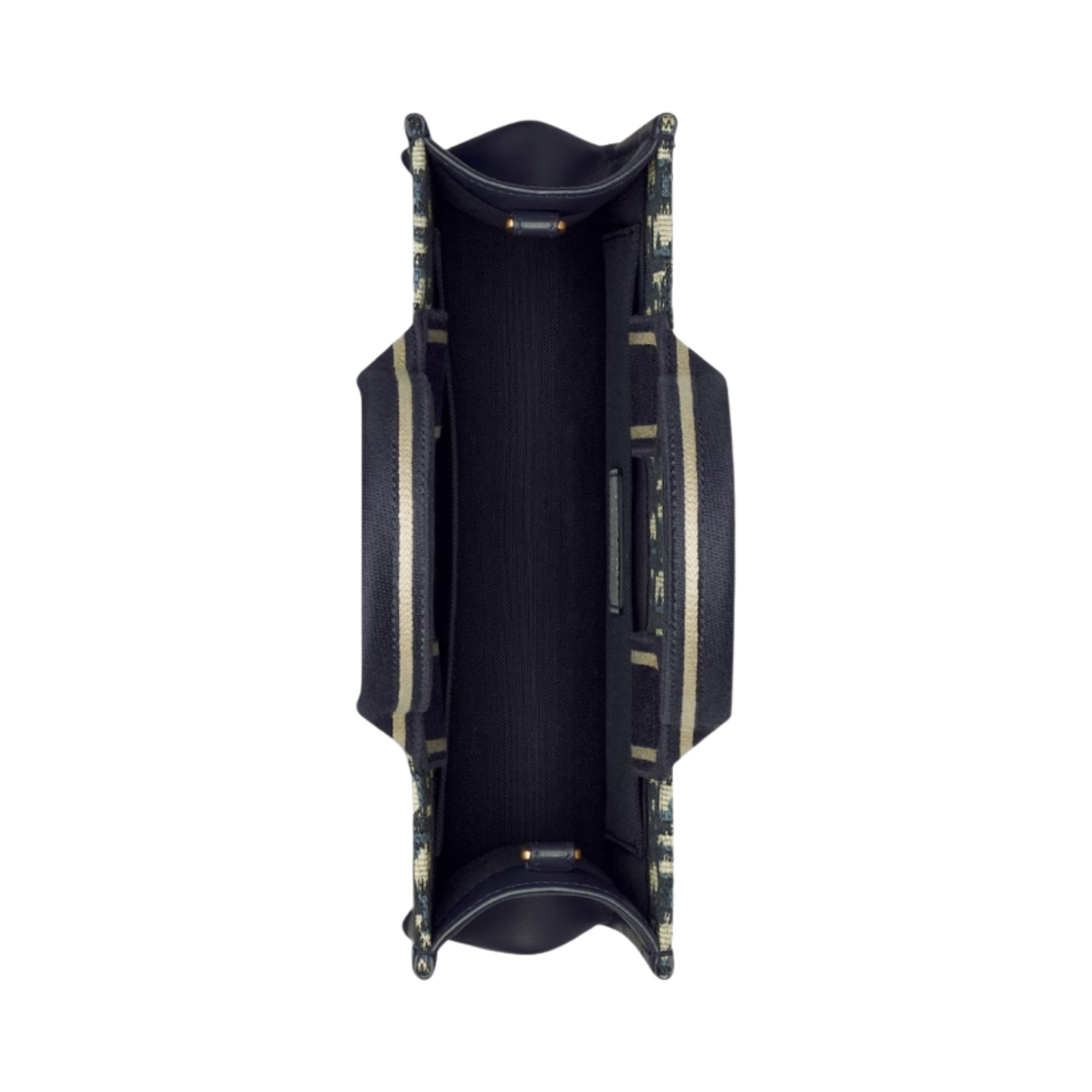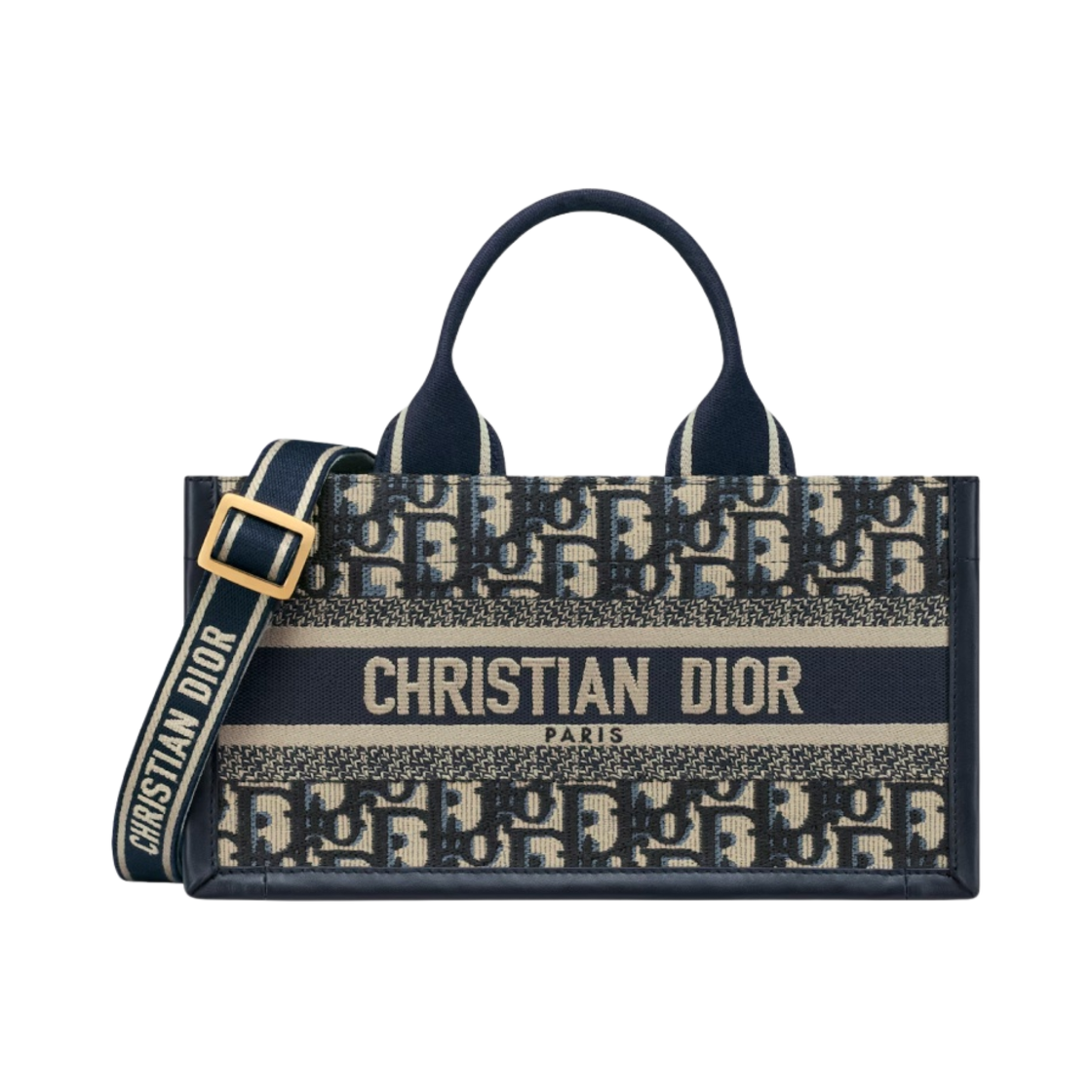 Dior East-West Tote Bag With Strap Blue Dior Oblique Embroidery Calfskin