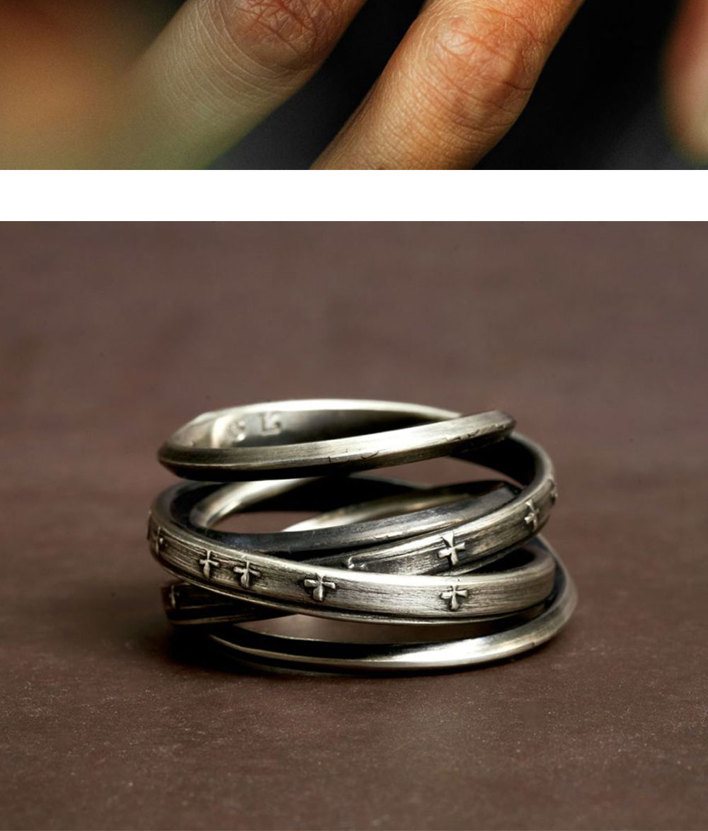 결합, 재결합, 그리고 긍정적인 에너지를 의미하는 '+' 기호가 새겨진 유나이트 실버 반지입니다. - 개별 반지가 아닌 하나의 조각 - 수작업 '+' 기호 디테일