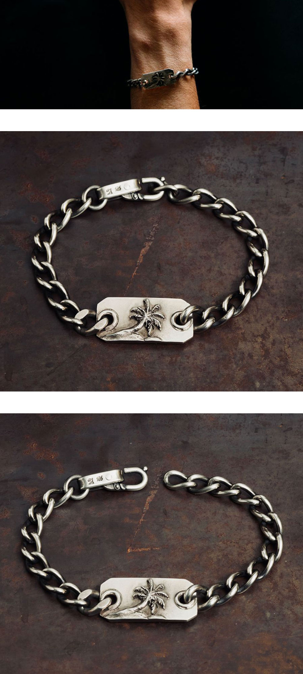 '자유', '평화', '행운'을 상징하는 야자수 나무가 새겨진 실버 팔찌입니다.