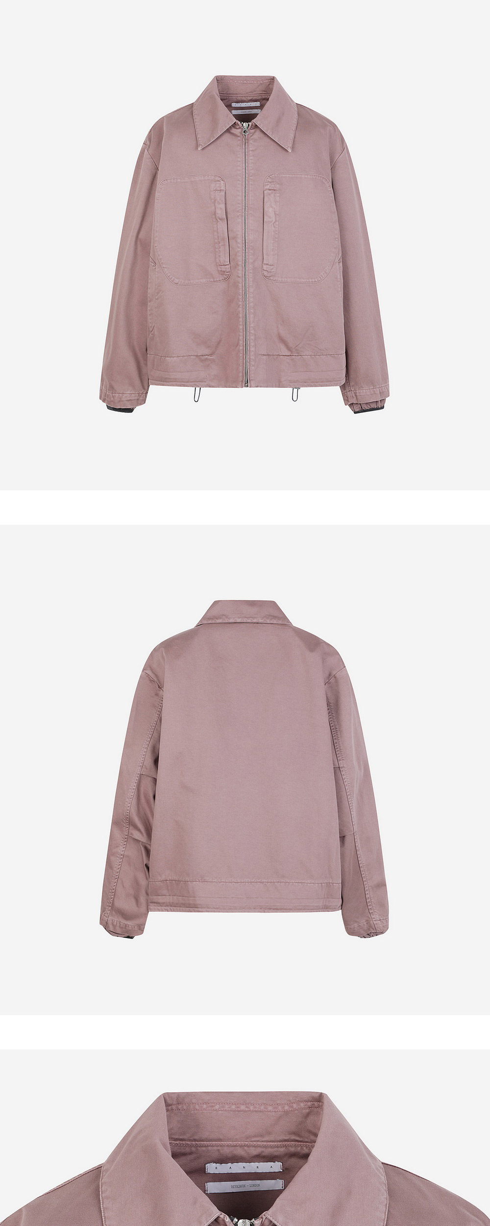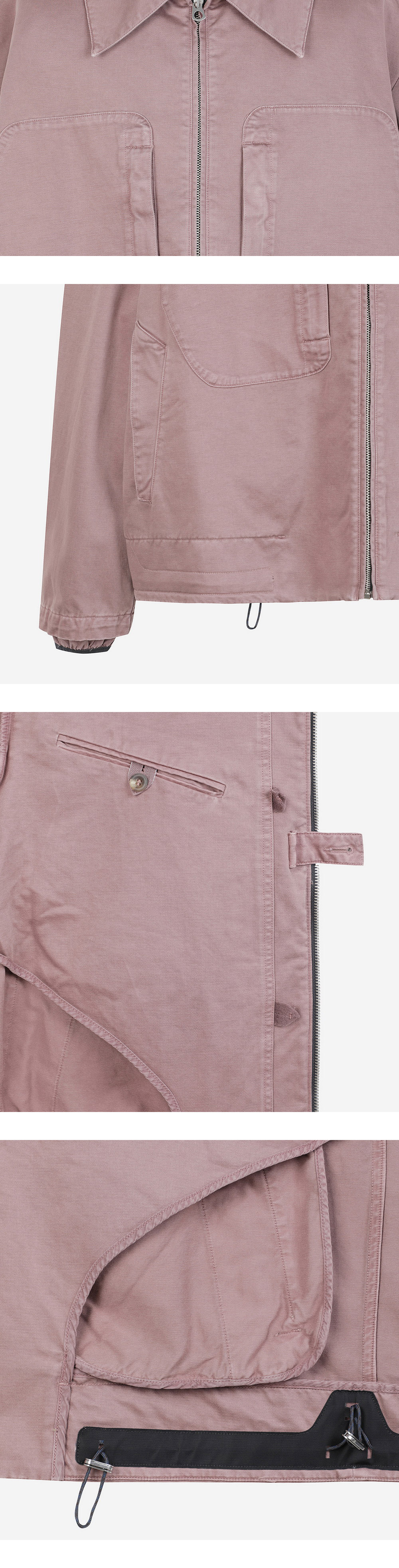 워시드 모브 컬러가 돋보이는 란라의 코튼 재킷입니다. - 가슴에 두 개의 포켓 - 밑단의 조임 디테일