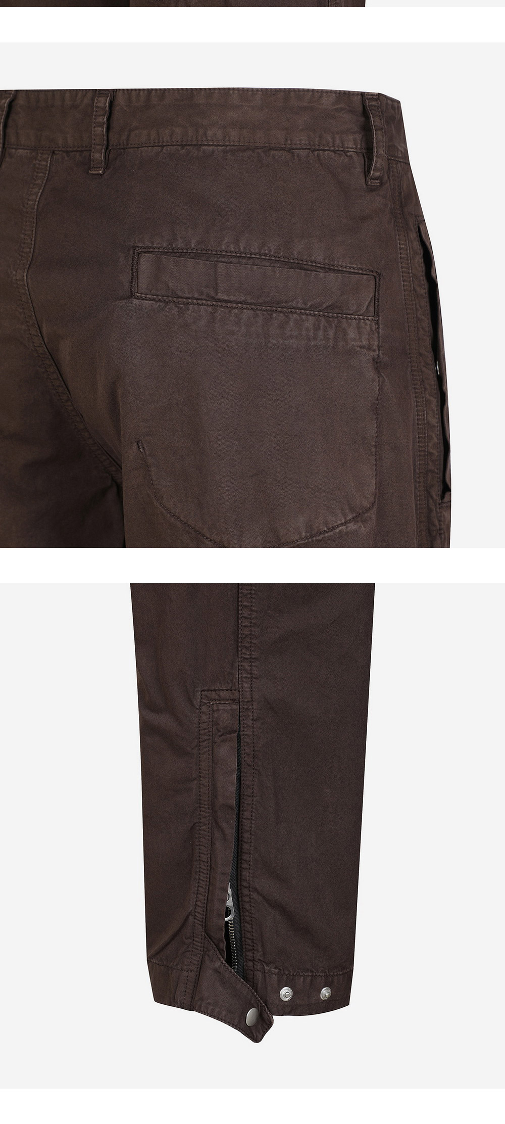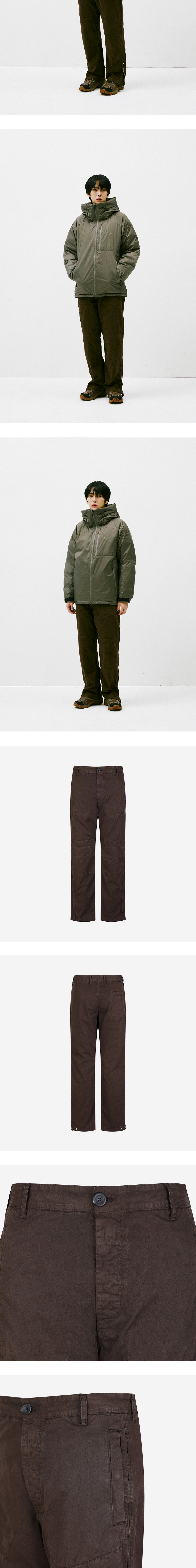 패널 및 스티치 디테일로 란라의 감성이 돋보이는 트라우저입니다. - 전면 주머니 2개, 후면 주머니 1개 - 무릎의 패널과 플리츠 디테일 - 발목의 스터드 탭 디테일