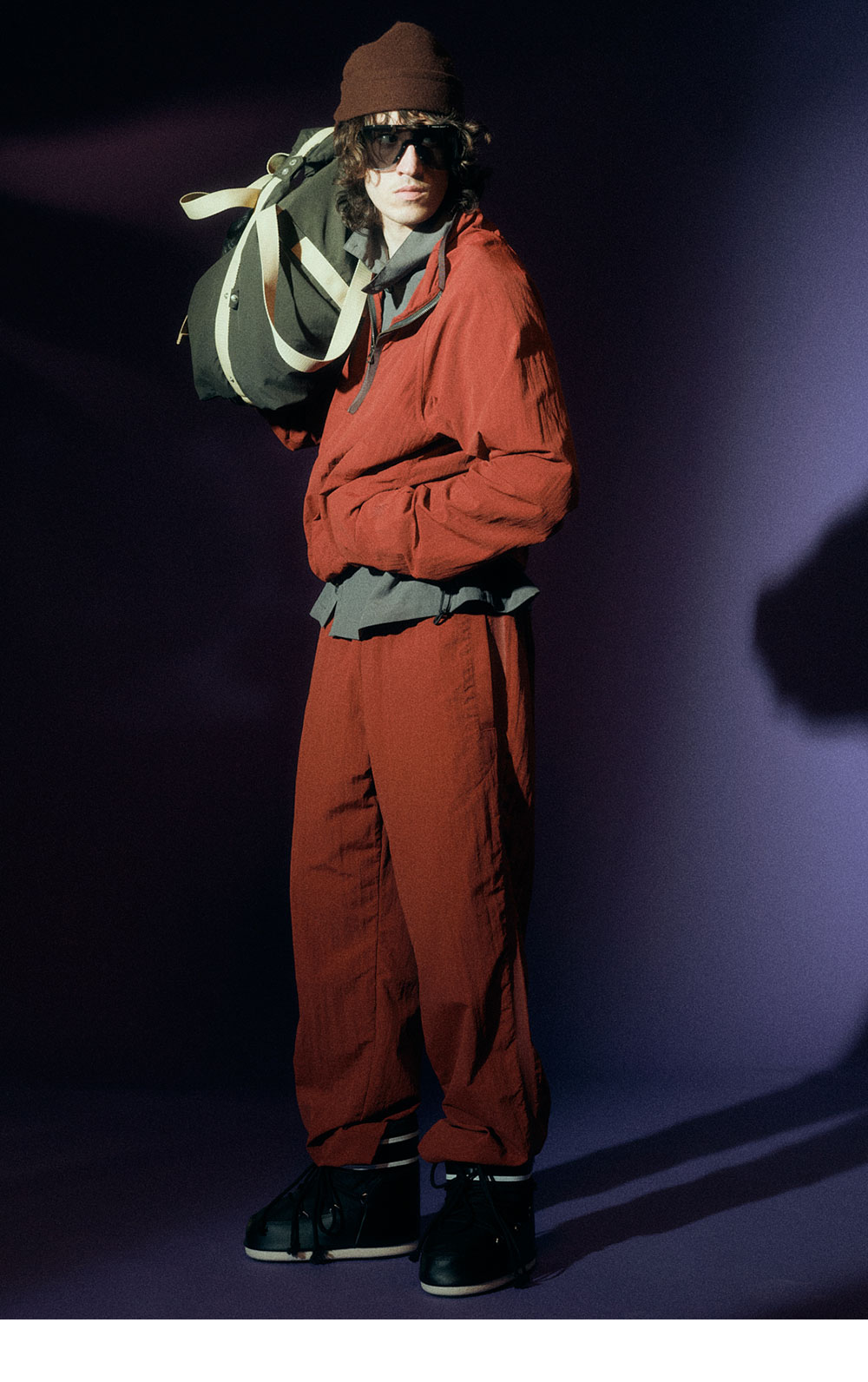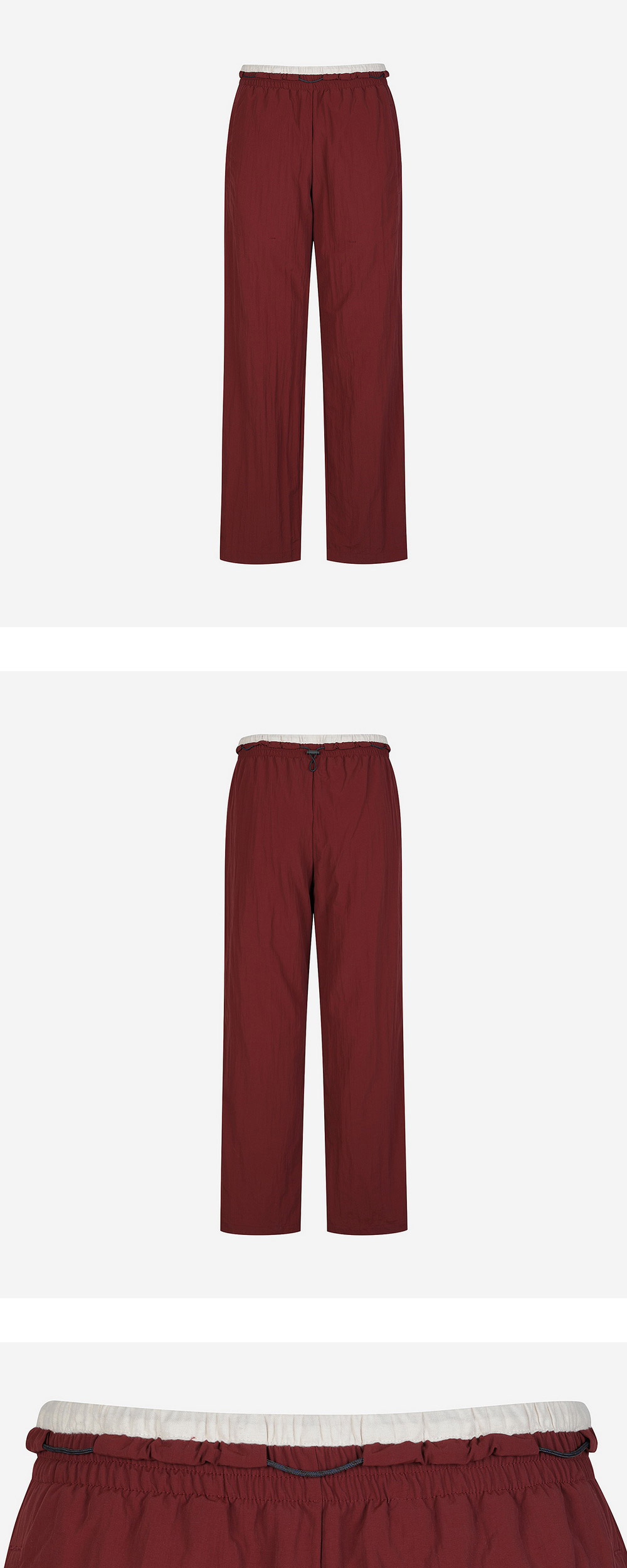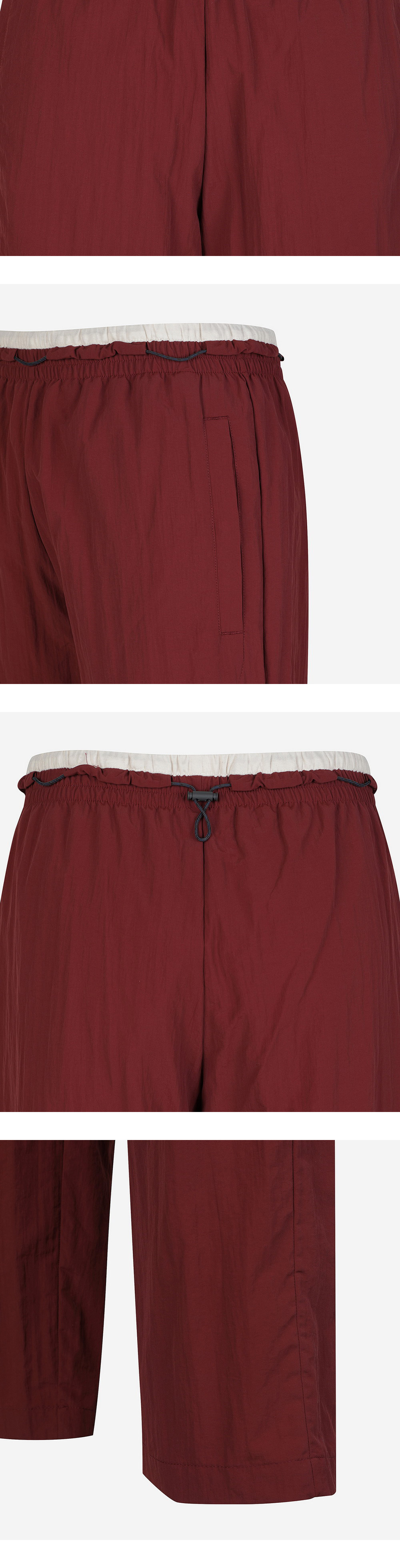 란라만의 색감이 돋보이는 마룬 컬러 트라우저입니다. - 드로우 스트링 디테일로 허리 조절 가능 - 주름잡힌 나일론 소재