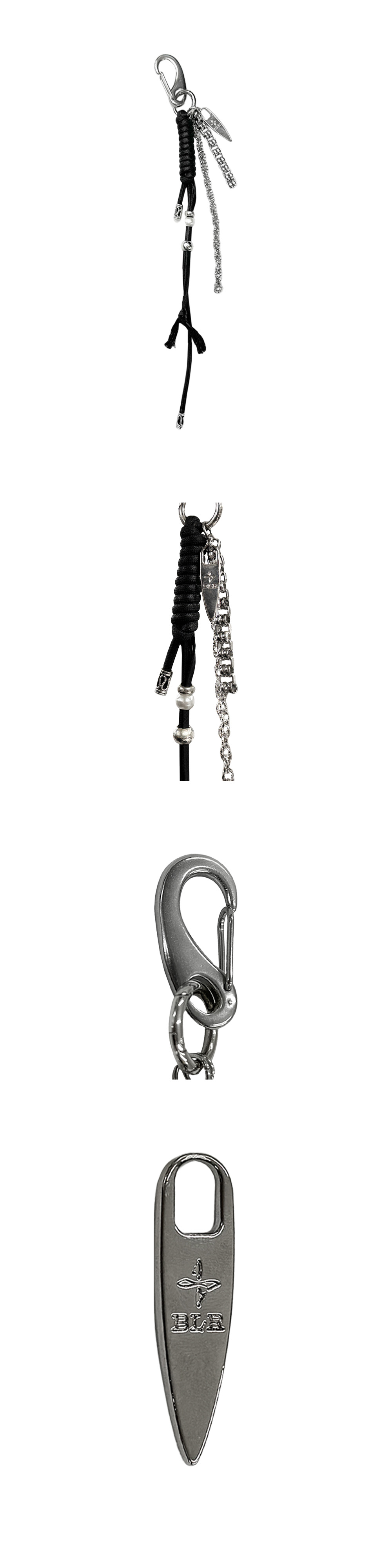 자체 제작 BLR 로고 각인 펜던트 무게감 있는 매듭 형태의 스트링 유니크한 쉐입의 체인과 실버 볼 견고한 BLR 케이스 포장 제공