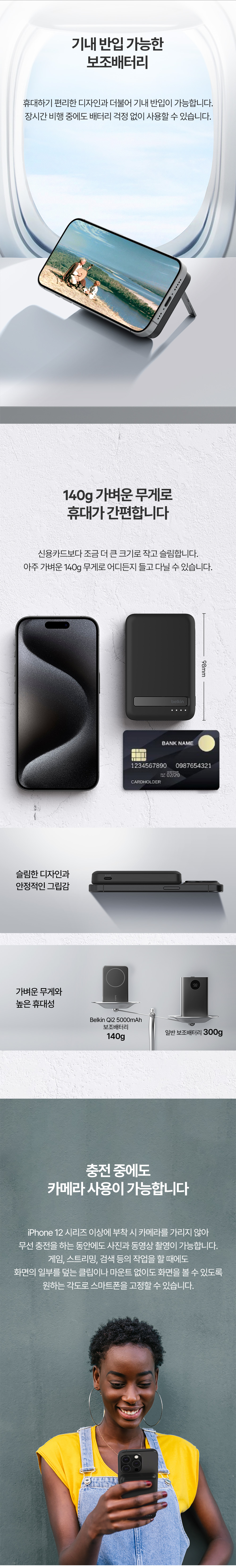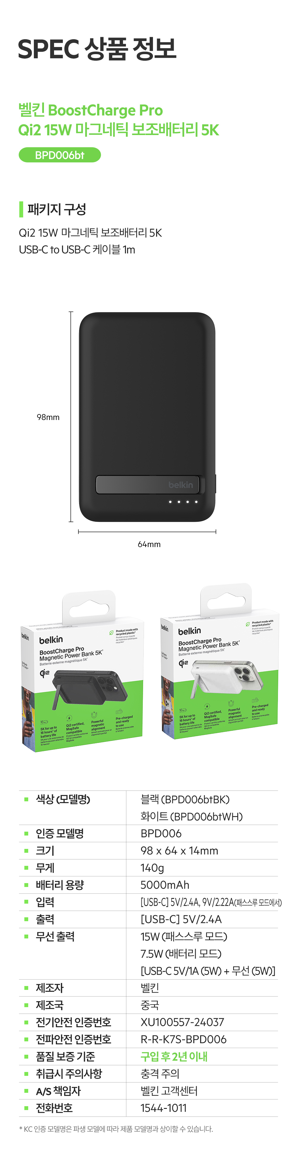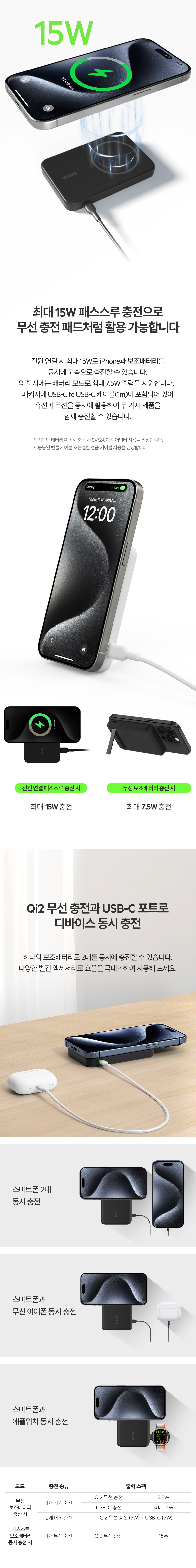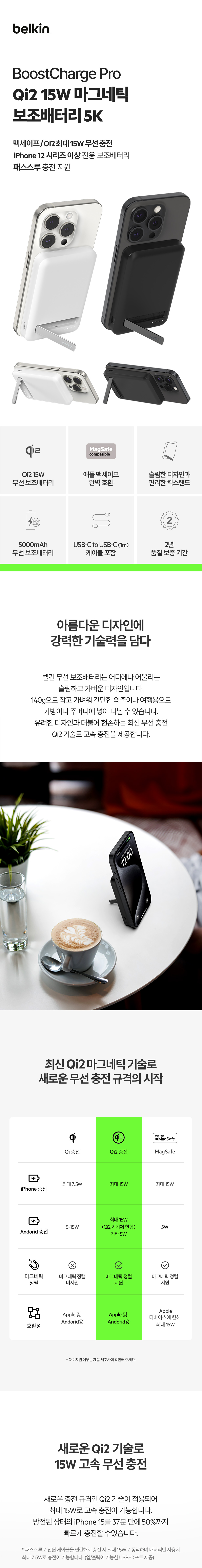 벨킨 5000mAh Qi2 15W 마그네틱 무선 충전 보조배터리 BPD006bt 블랙